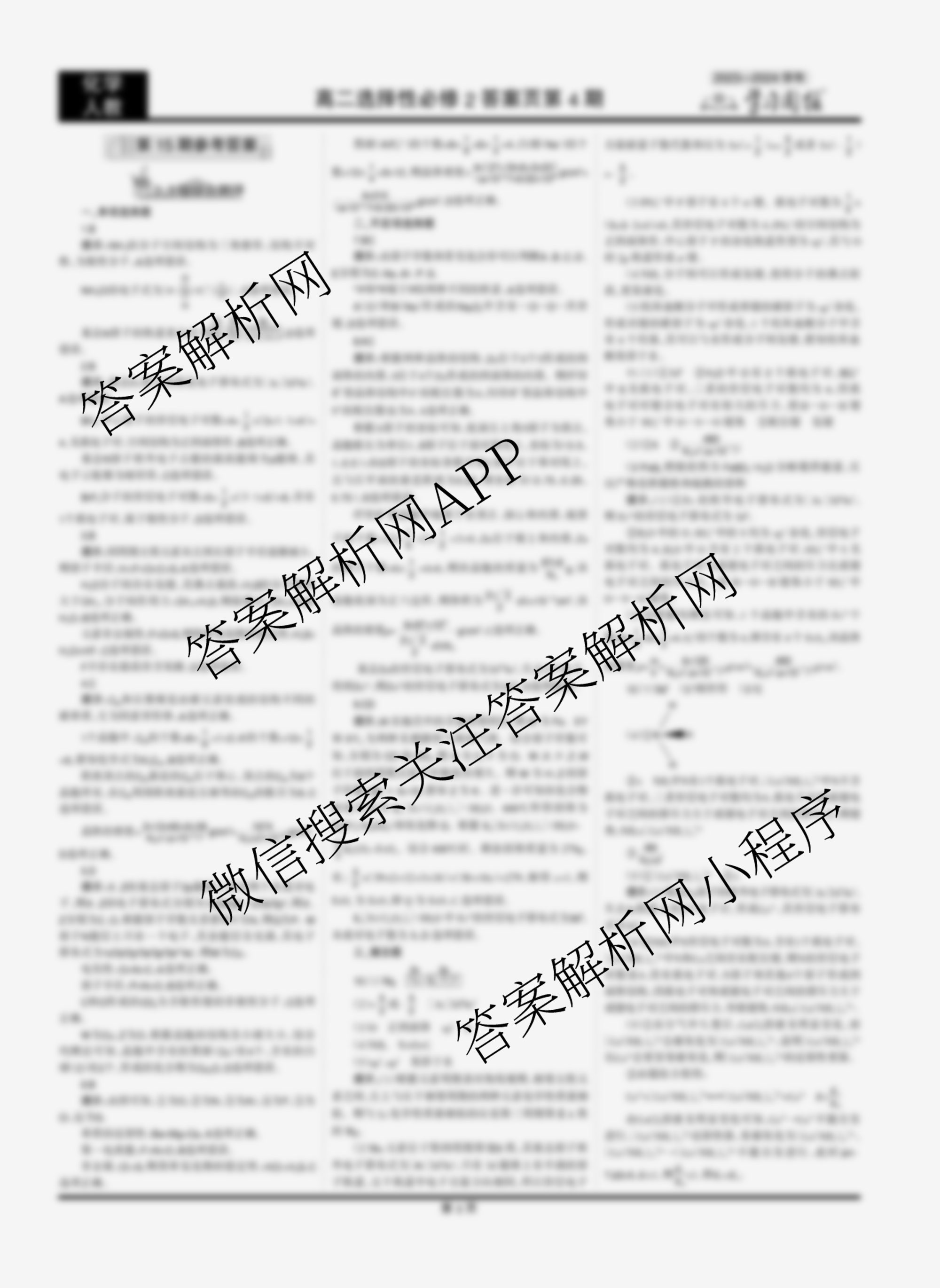 2023-2024 学习周报 化学 人教高二选择性必修2第15期答案
