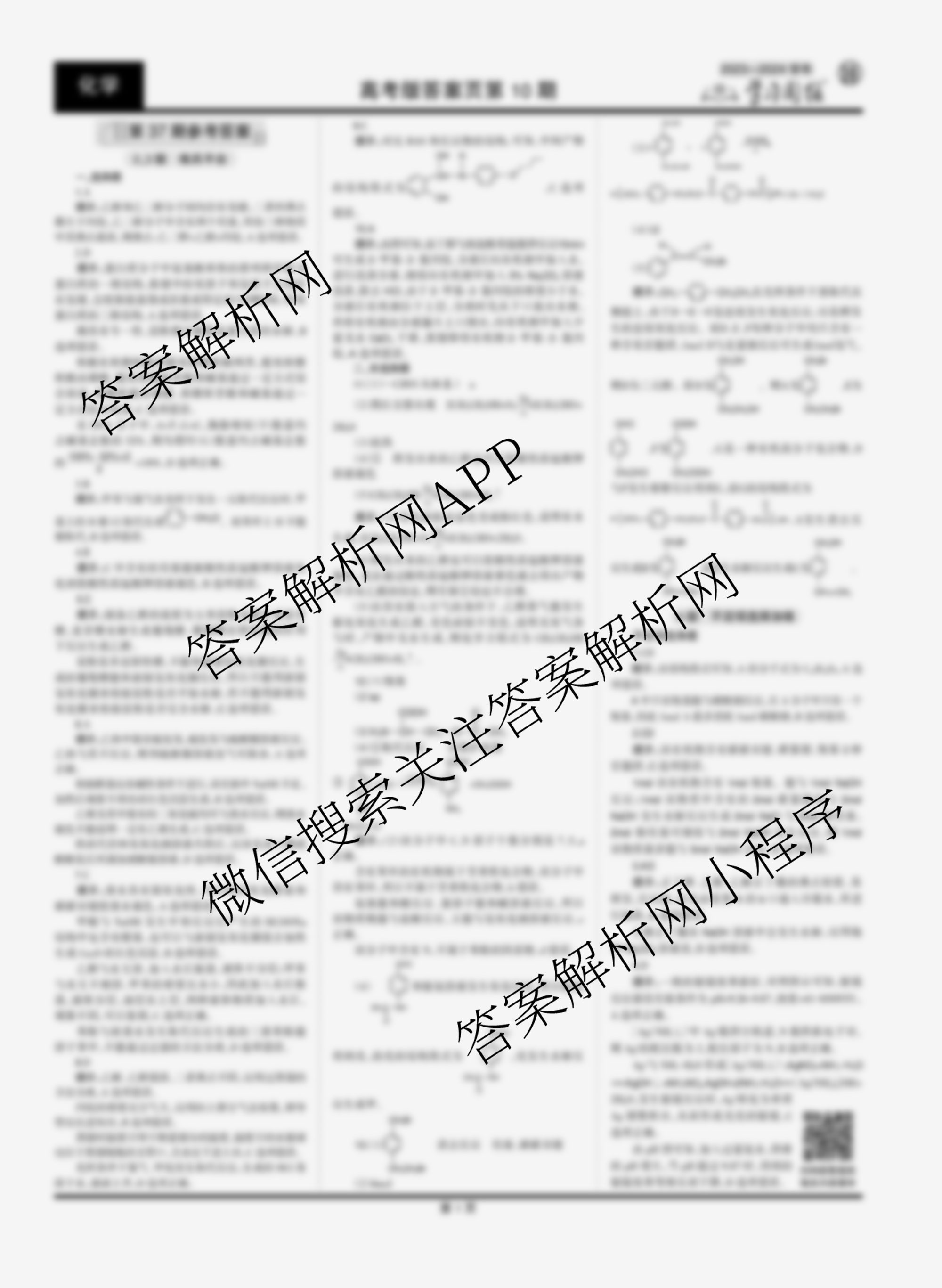 2023-2024 学习周报 化学(高考版)第37期答案