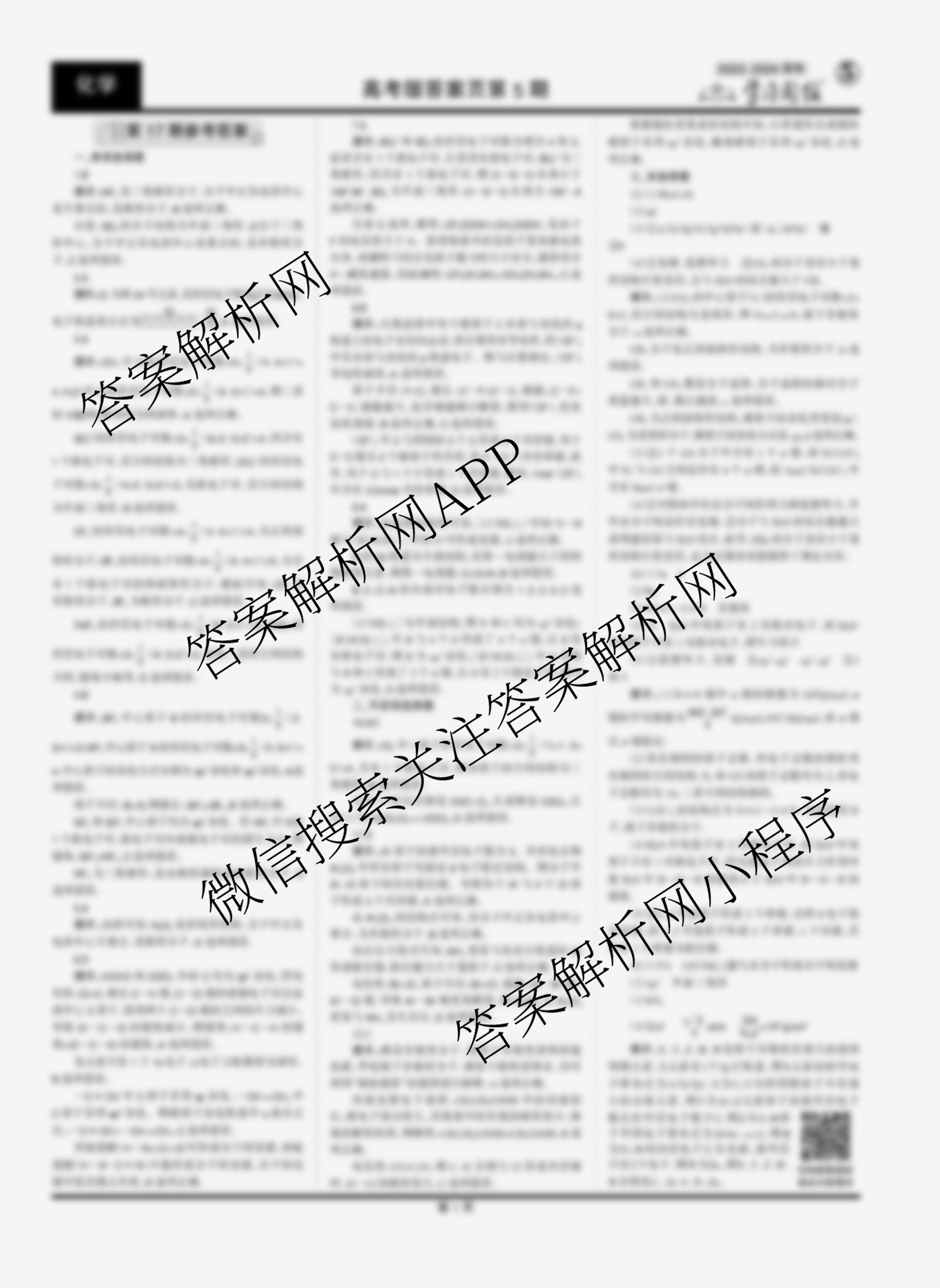 2023-2024 学习周报 化学(高考版)第17期答案
