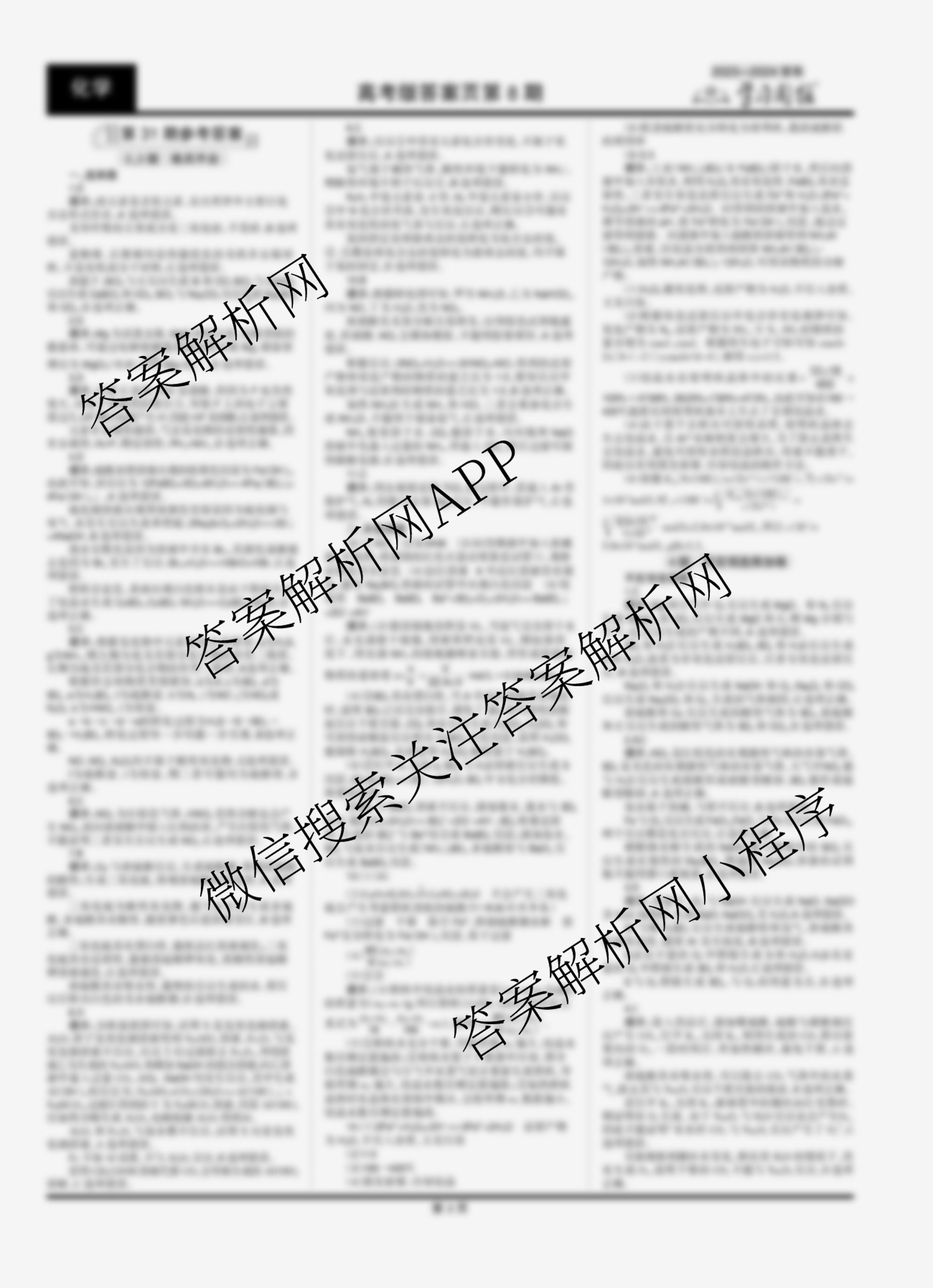 2023-2024 学习周报 化学(高考版)第31期答案
