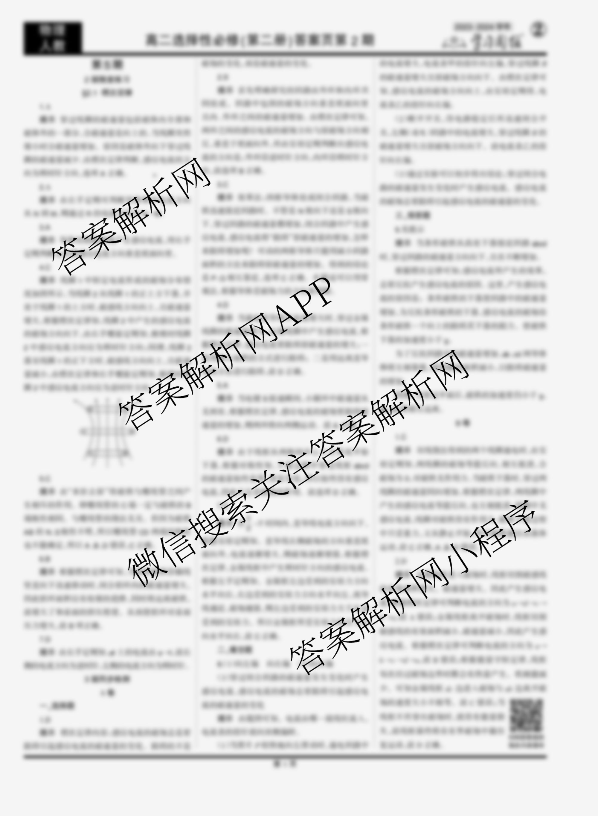 2023-2024 学习周报 物理人教高二选择性必修(第二册)第5期答案