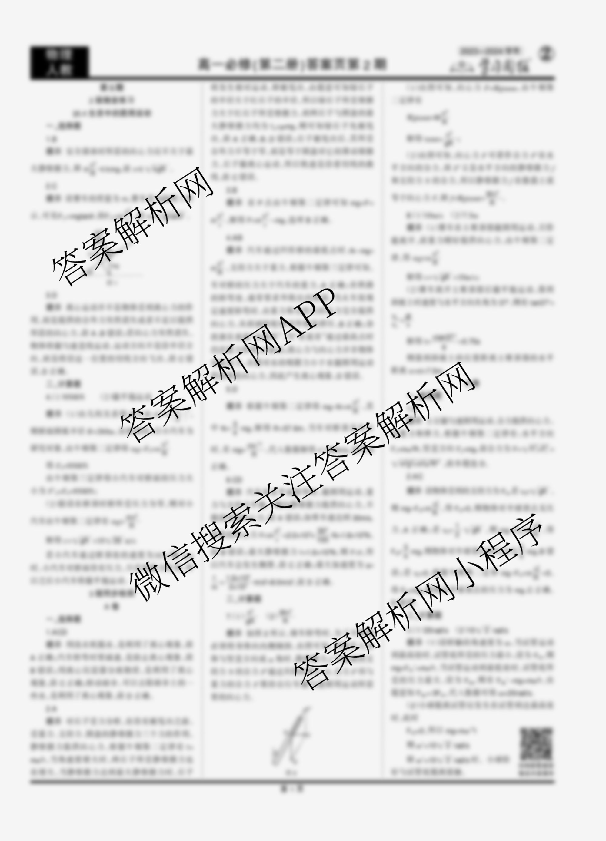 2023-2024 学习周报 物理·人教·高一必修(第二册)第5期答案,目前学英语报答案已经汇总了2023-2024 学习周报 物理·人教·高一必修(第二册)第5期答案的各科答案和试卷,获取更多学习周报答案解析,请在关注本站。