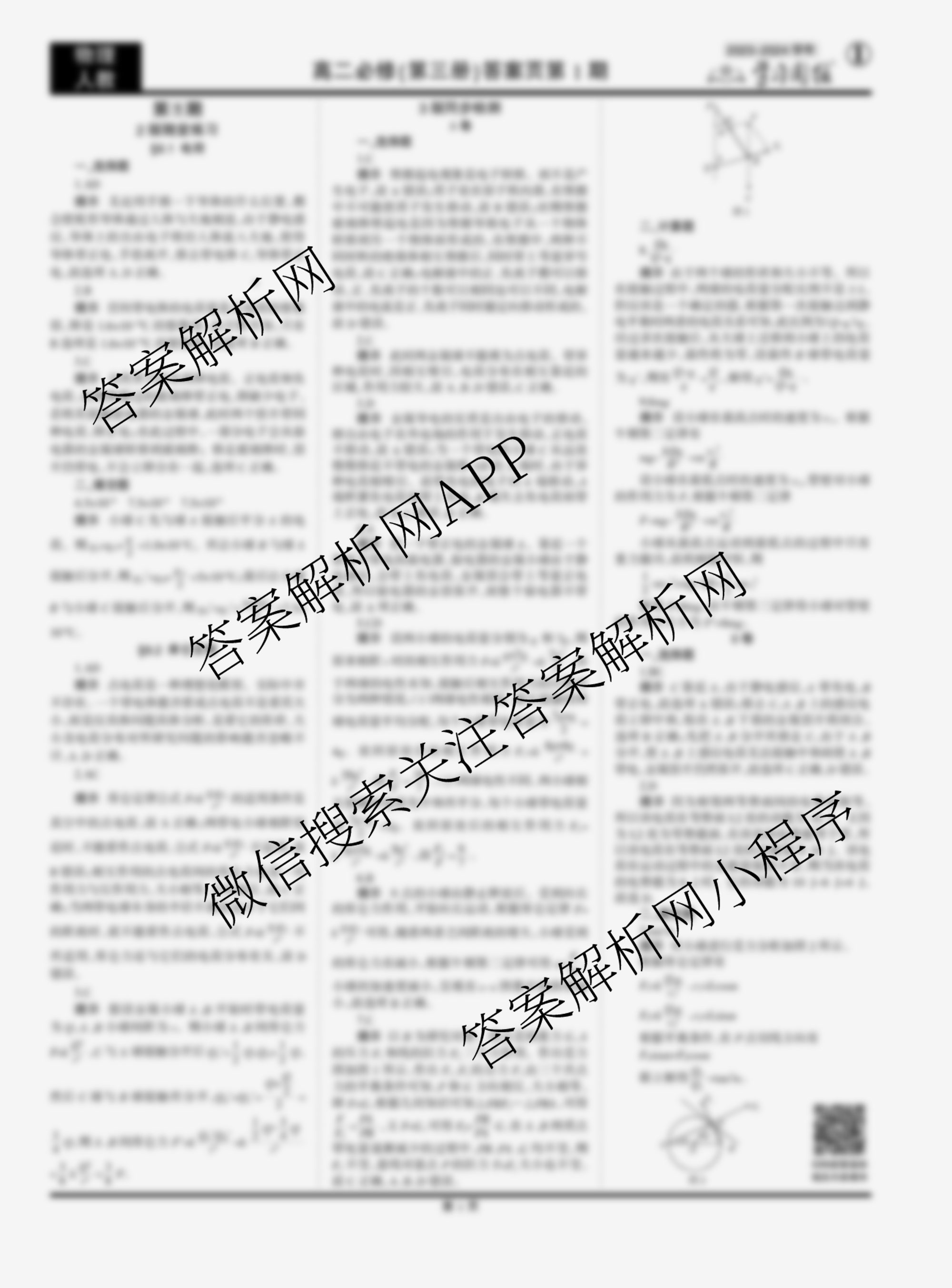 2023-2024 学习周报 物理人教高二必修(第三册)第1期答案
