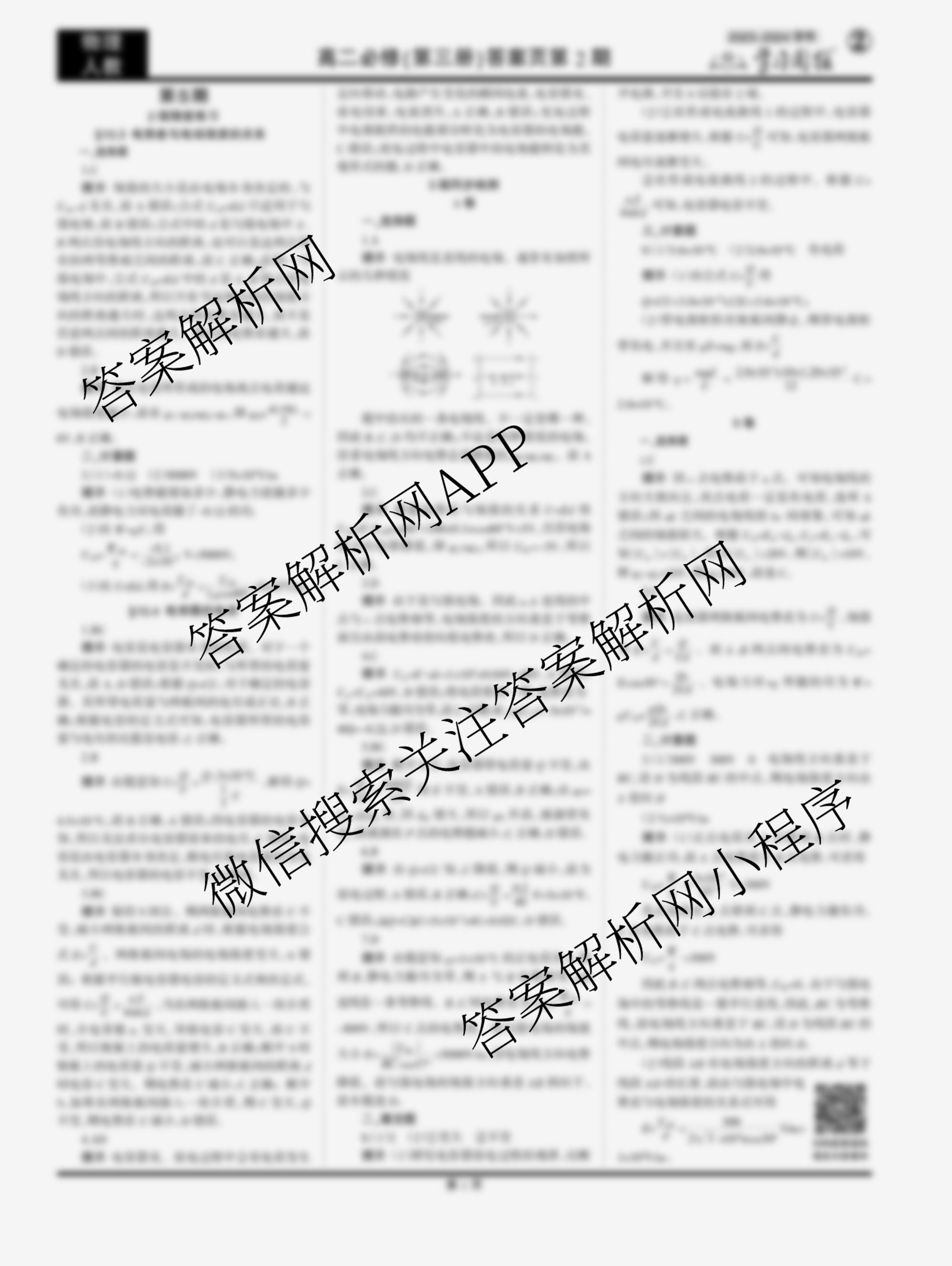 2023-2024 学习周报 物理人教高二必修(第三册)第5期答案