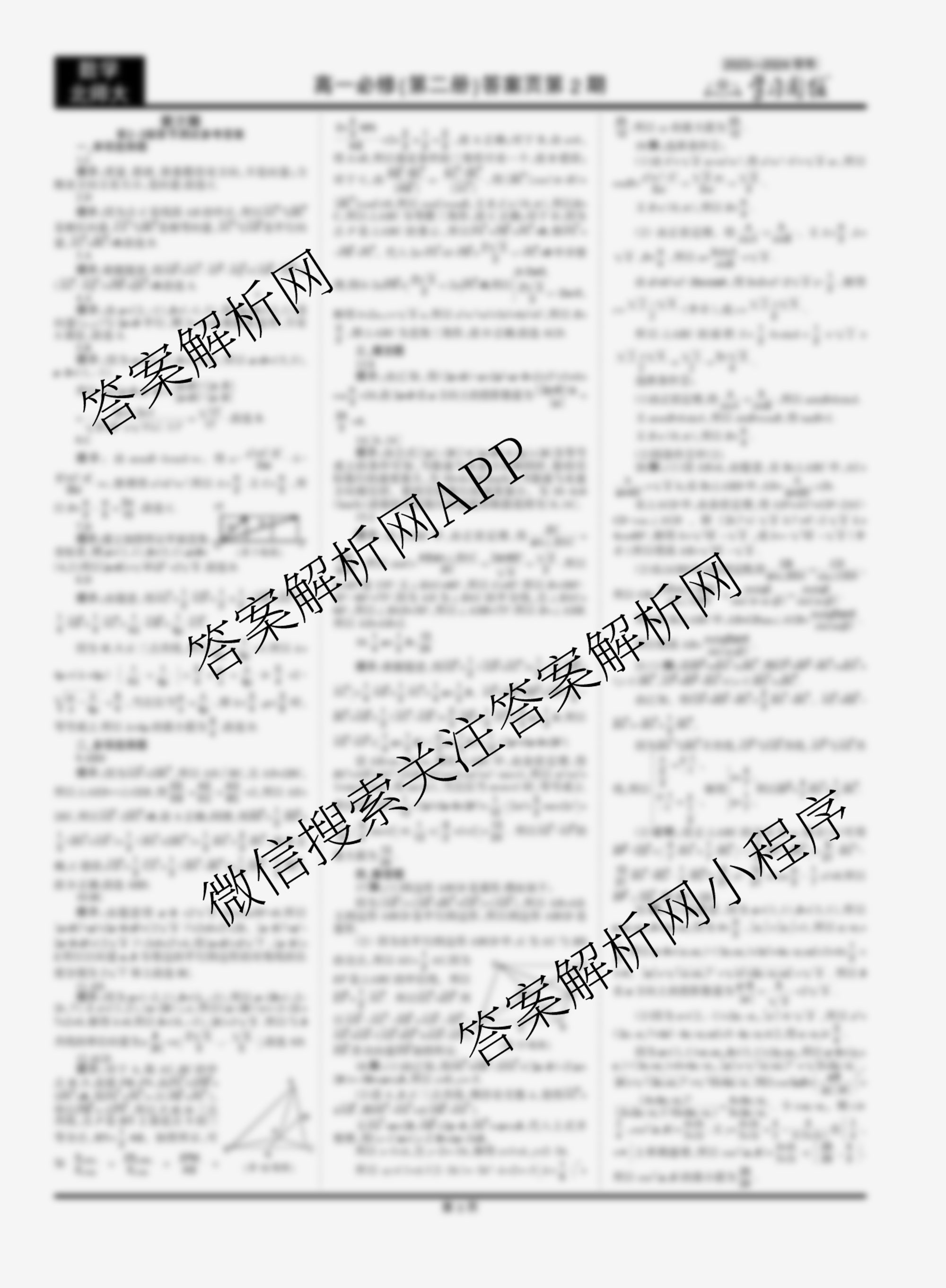 2023-2024 学习周报 数学北师大高一必修(第二册)第7期答案