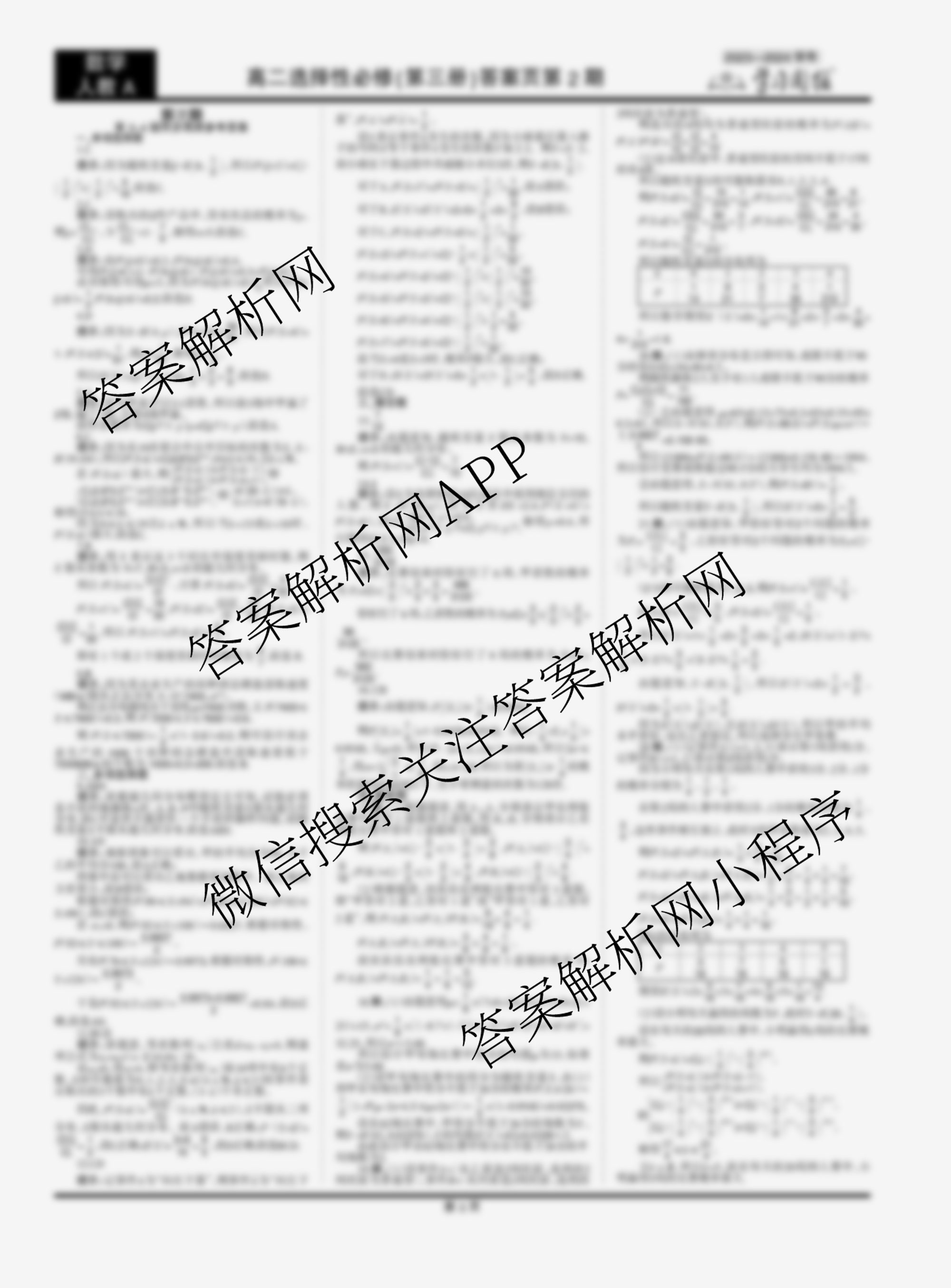 2023-2024 学习周报 数学人教A高二选择性必修(第三册)第7期答案