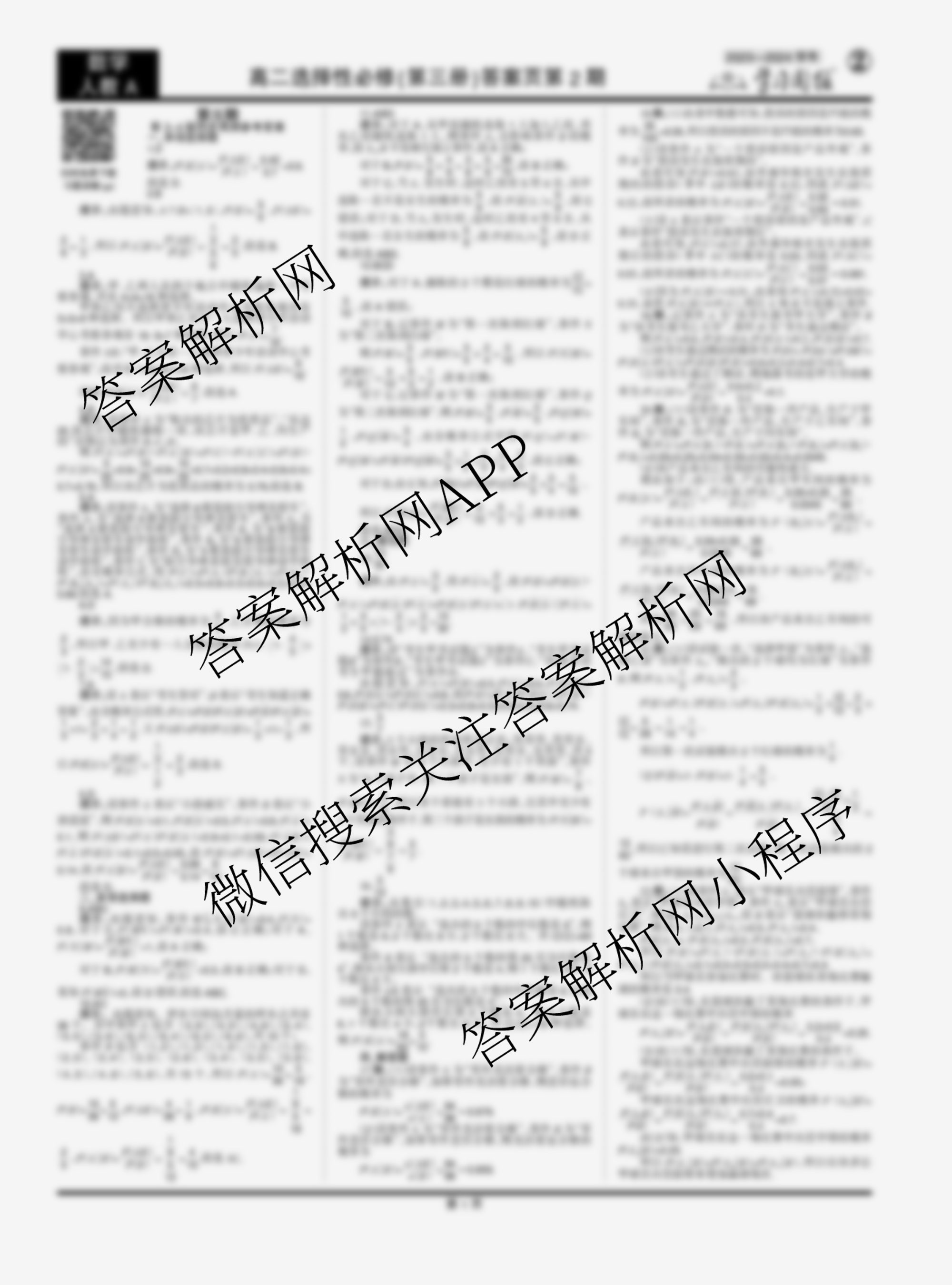 2023-2024 学习周报 数学人教A高二选择性必修(第三册)第5期答案