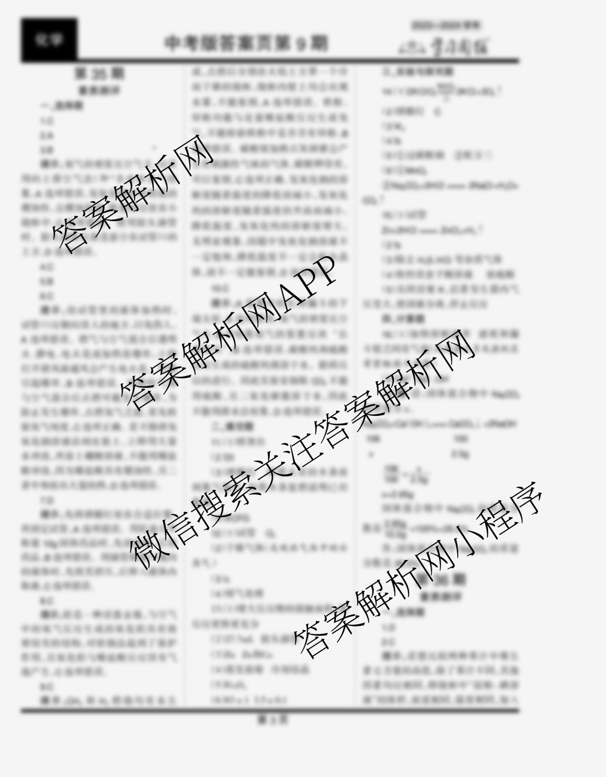 2023-2024 学习周报 化学 中考版第35期答案