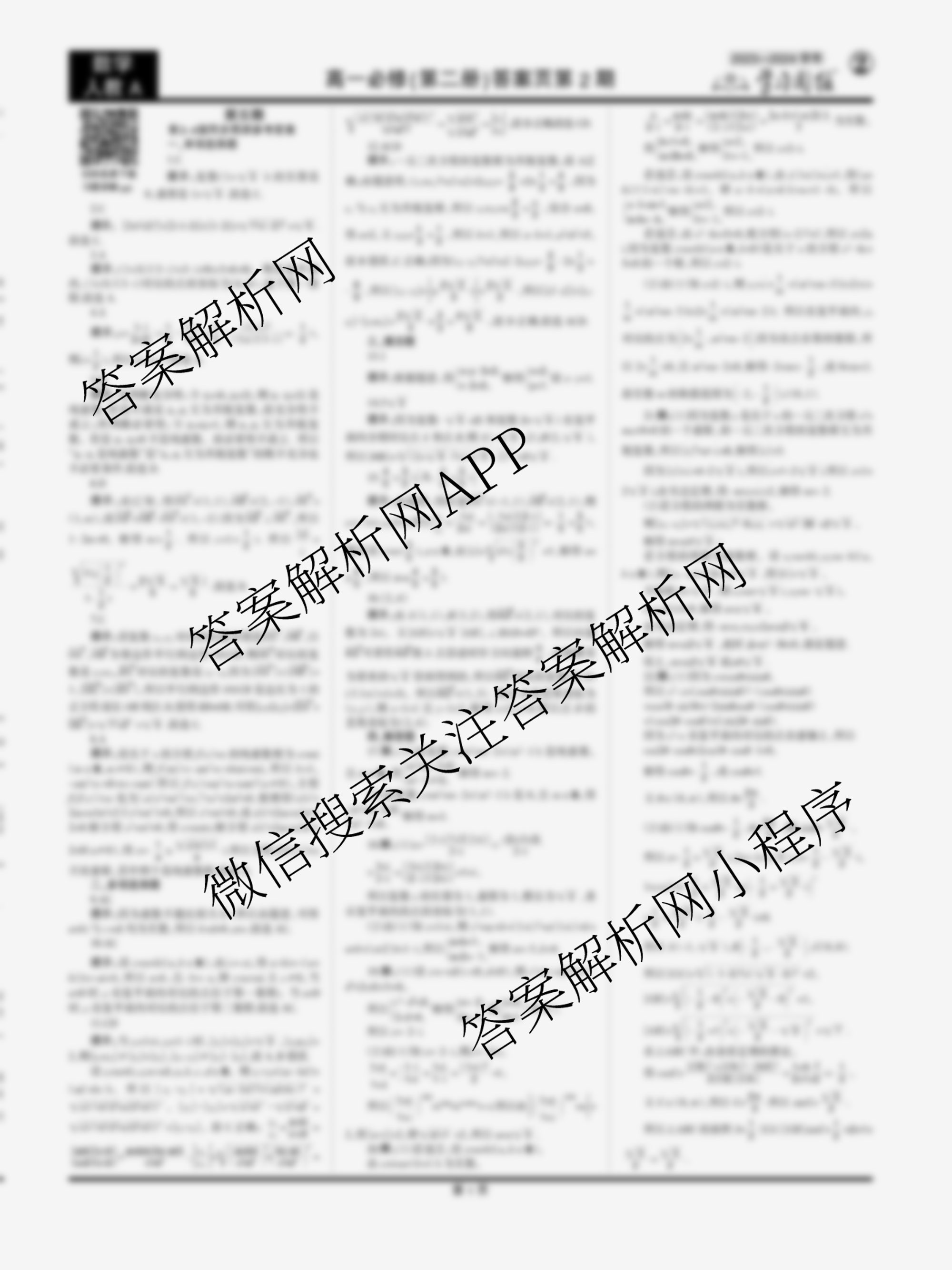 2023-2024 学习周报 数学·人教A·高一必修(第二册)第5期答案,目前学英语报答案已经汇总了2023-2024 学习周报 数学·人教A·高一必修(第二册)第5期答案的各科答案和试卷,获取更多学习周报答案解析,请在关注本站。