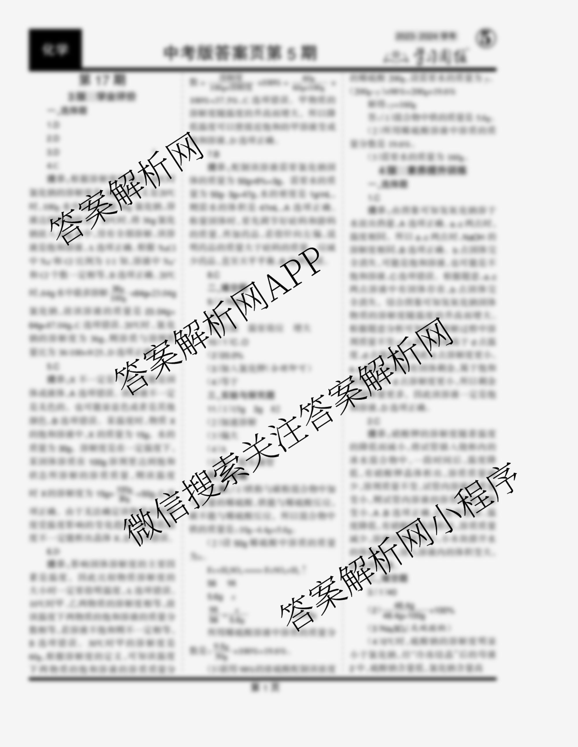 2023-2024 学习周报 化学 中考版第17期答案