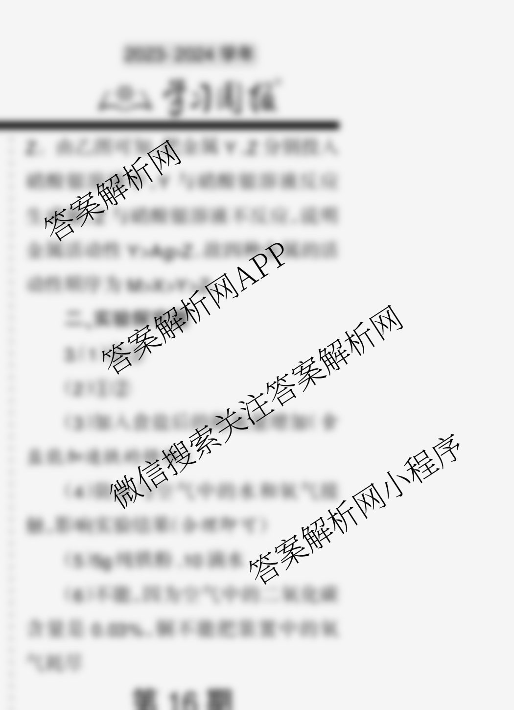 2023-2024 学习周报 化学 中考版第15期答案,目前学英语报答案已经汇总了2023-2024 学习周报 化学 中考版第15期答案的各科答案和试卷,获取更多学习周报答案解析,请在关注本站。