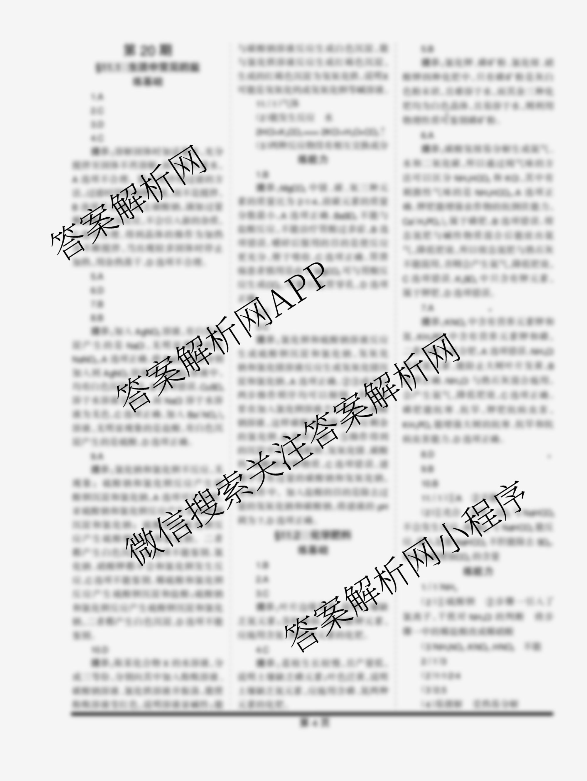 2023-2024 学习周报 化学 中考版第20期答案