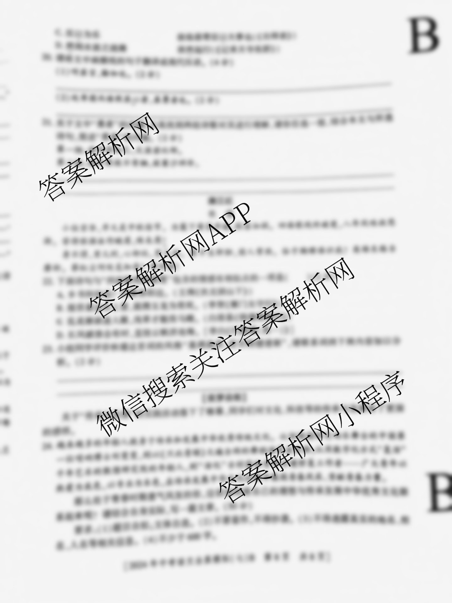 - [九年级]陕西益卷2024年陕西省初中学业水平考试全真模拟(七)7语文(B)答案
