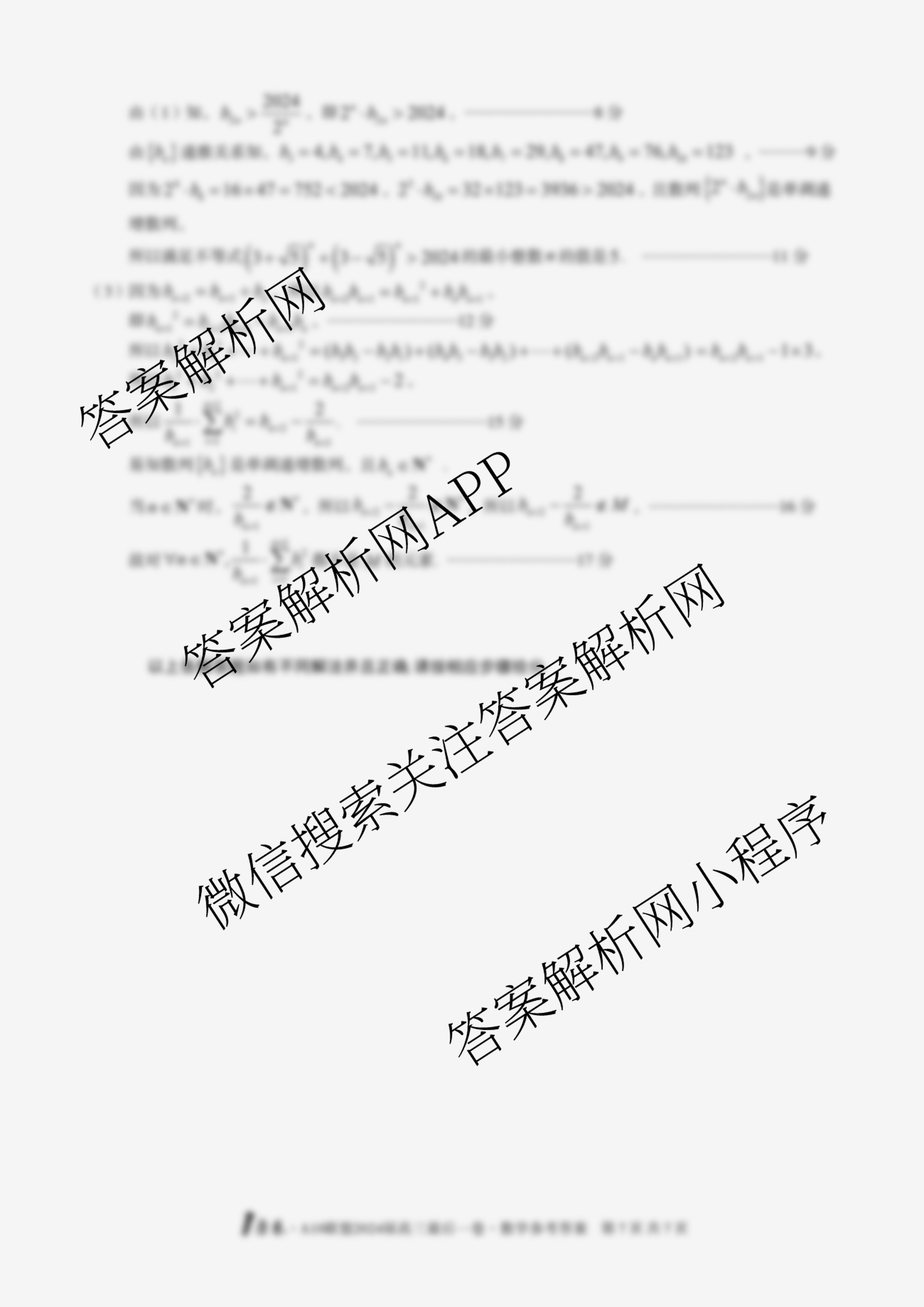 - [高三](1号卷)A10联盟2024届最后一卷数学答案