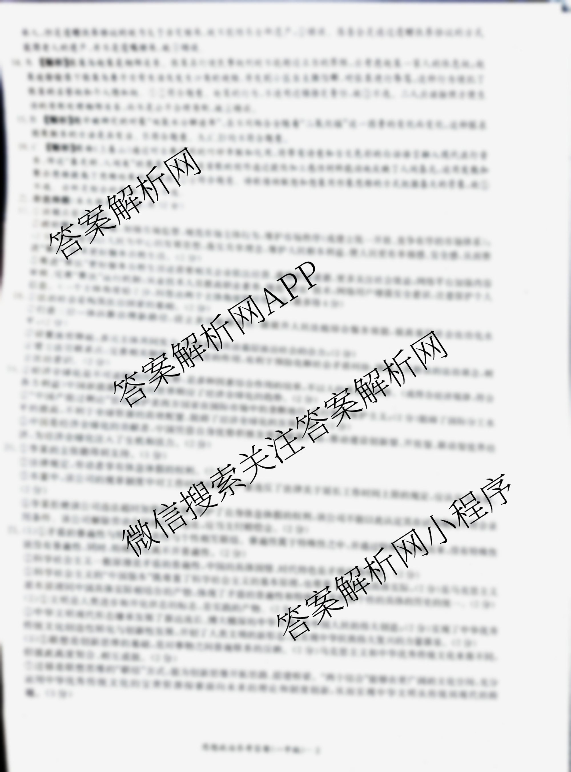 - (炎德英才大联考)·长沙市一中2024届模拟试卷(二)政治答案