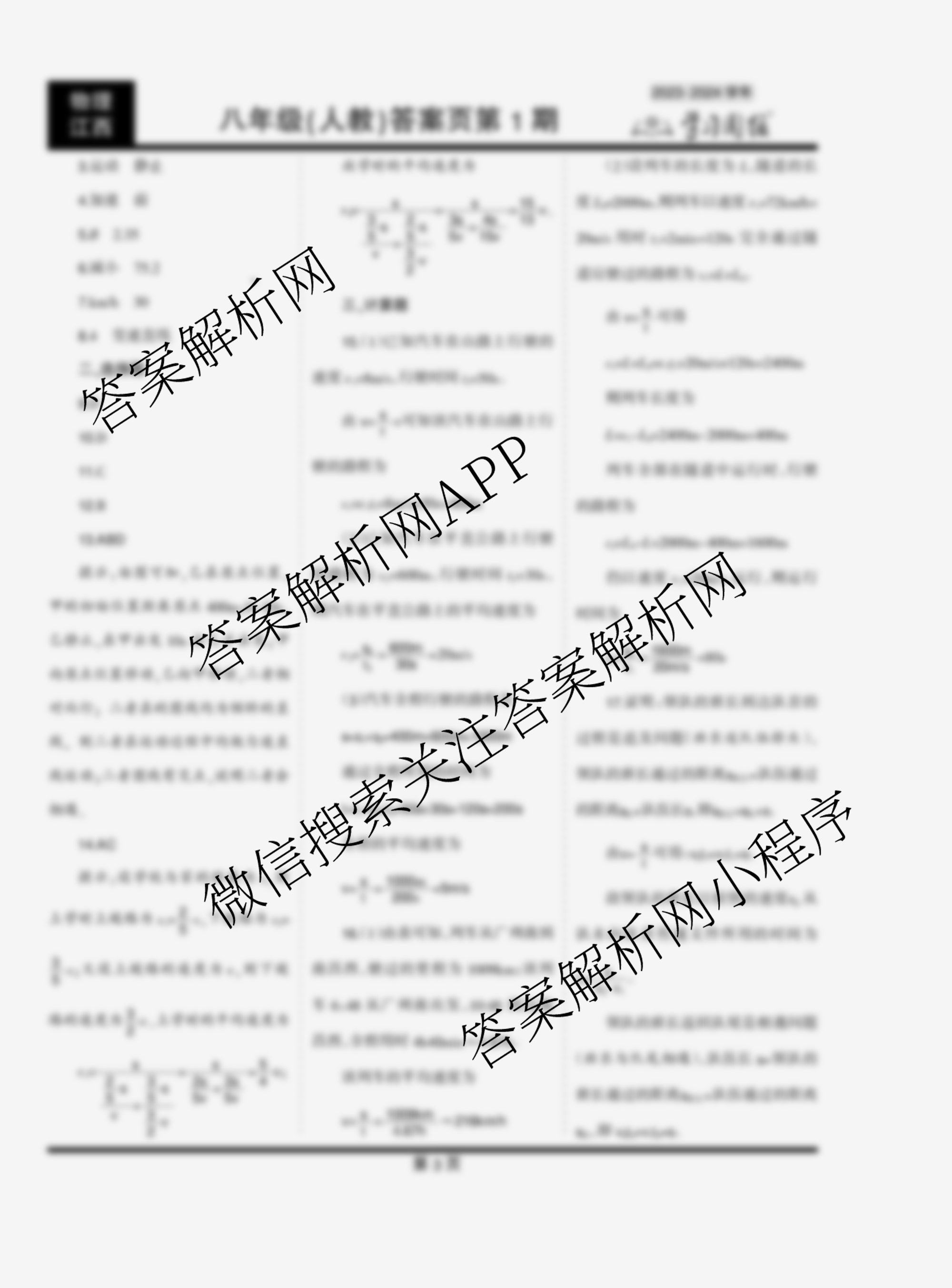 2023-2024 学习周报 物理 八年级(江西人教)第3期答案
