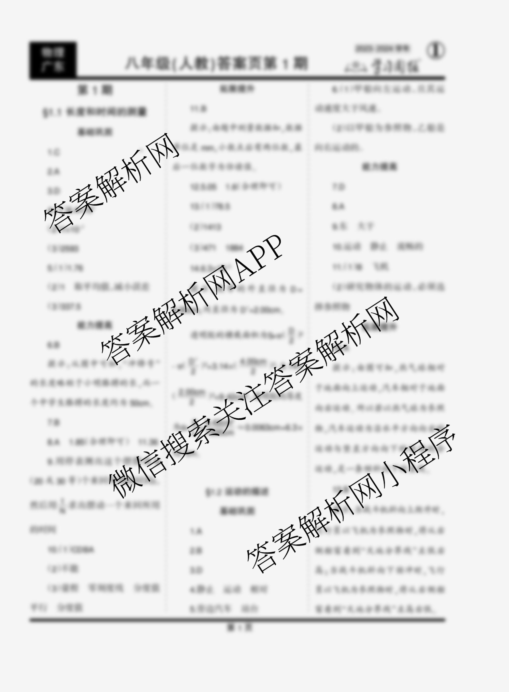 2023-2024 学习周报 物理 八年级(广东人教)第1期答案,目前学英语报答案已经汇总了2023-2024 学习周报 物理 八年级(广东人教)第1期答案的各科答案和试卷,获取更多学习周报答案解析,请在关注本站。