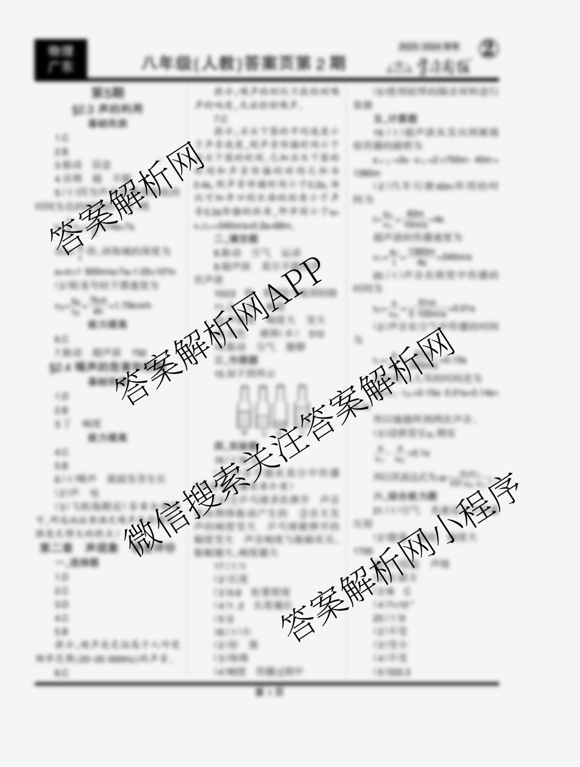 2023-2024 学习周报 物理 八年级(广东人教)第5期答案