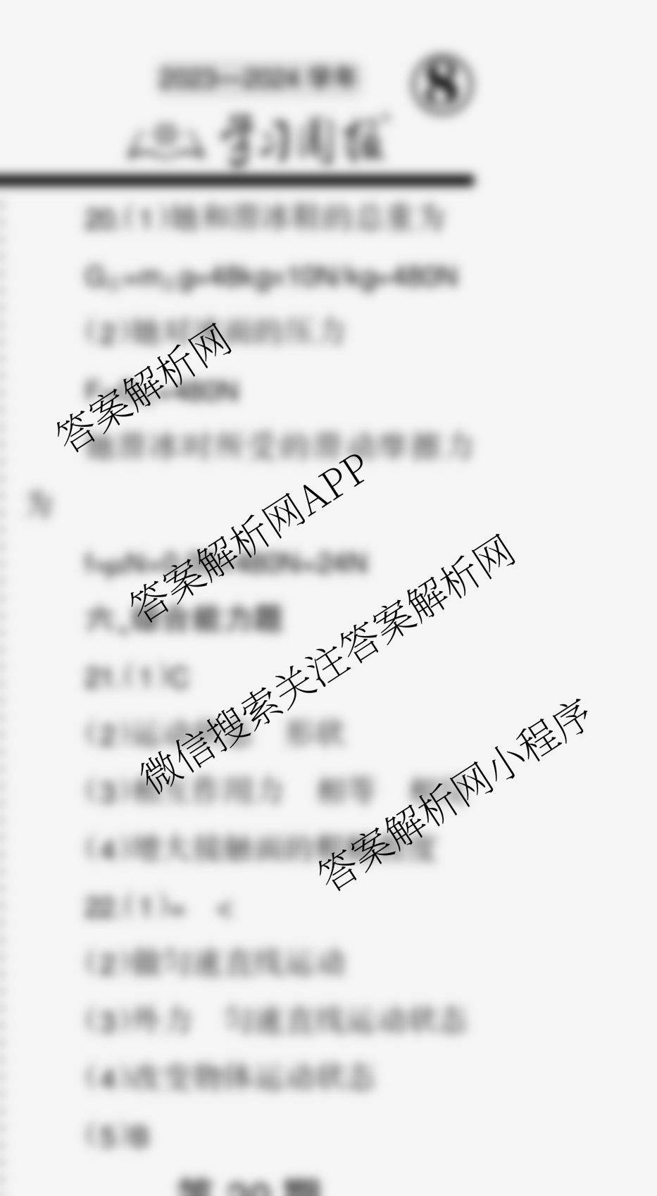 2023-2024 学习周报 物理 八年级(广东人教)第29期答案,目前学英语报答案已经汇总了2023-2024 学习周报 物理 八年级(广东人教)第29期答案的各科答案和试卷,获取更多学习周报答案解析,请在关注本站。