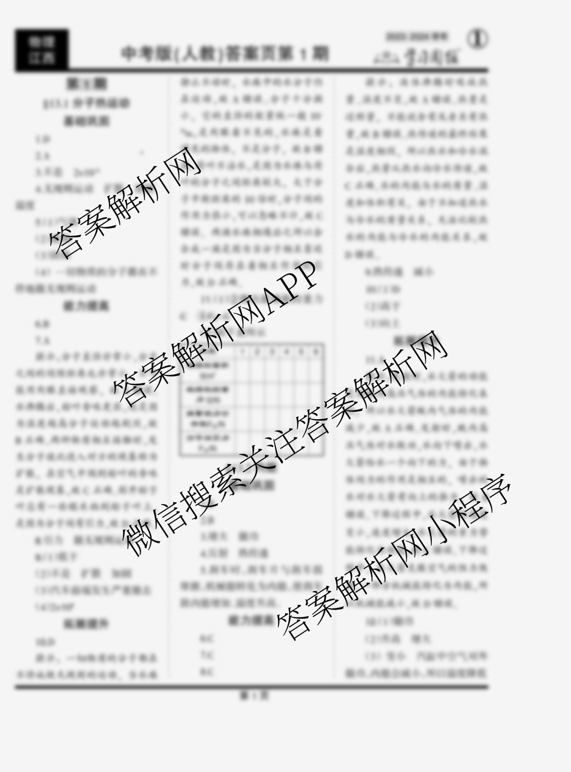 2023-2024 学习周报 物理 中考版江西(人教)第1期答案