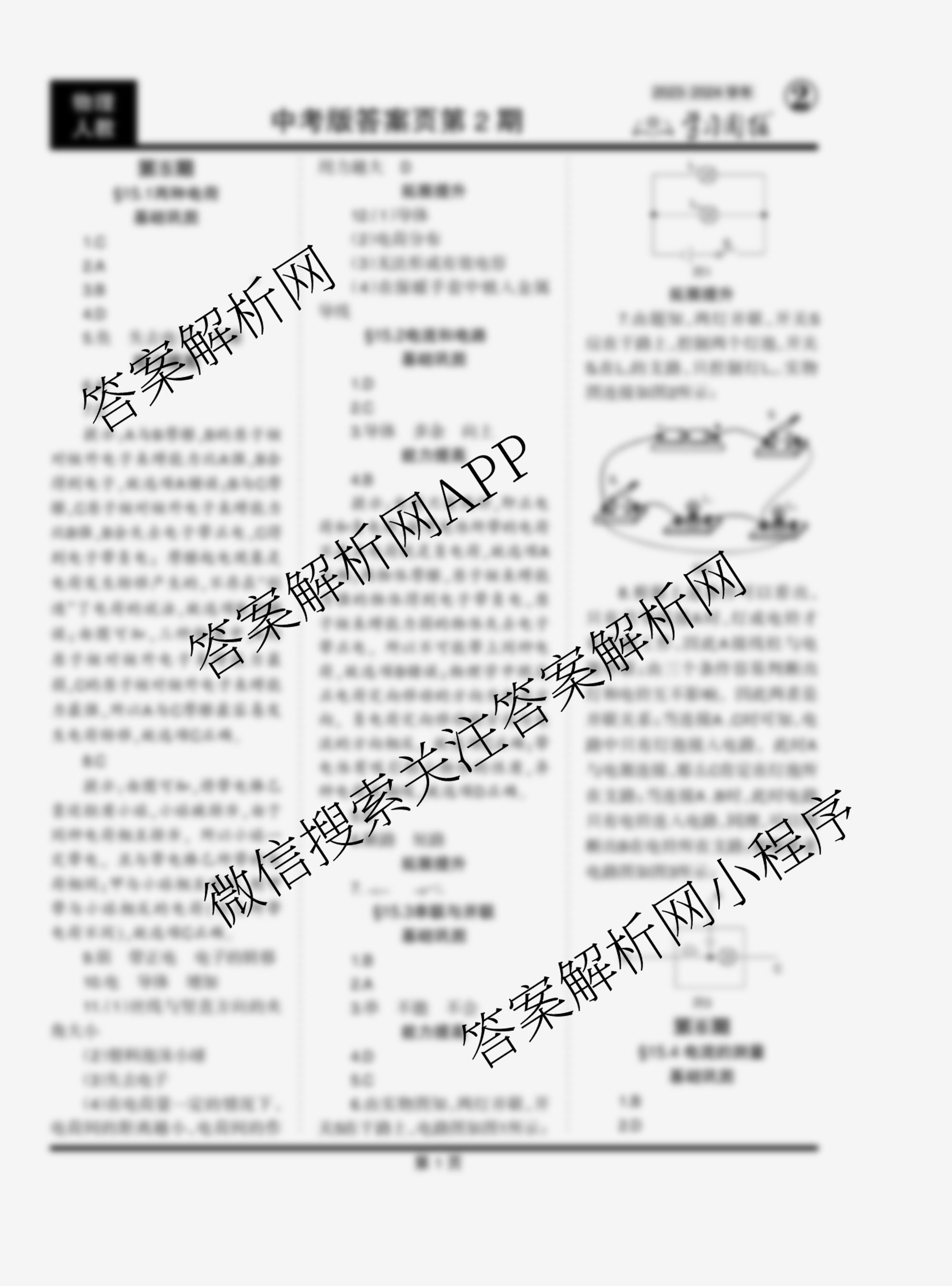 2023-2024 学习周报 物理 中考版(人教)第5期答案
