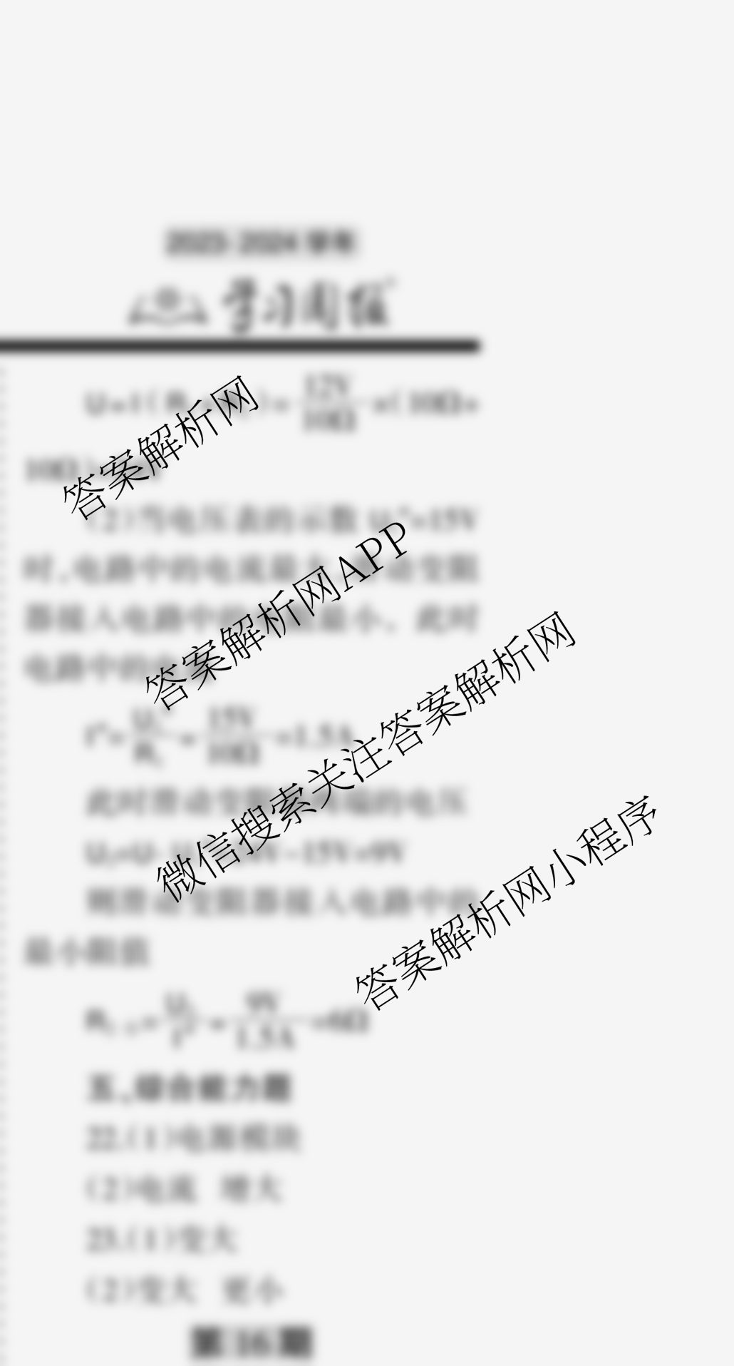 2023-2024 学习周报 物理 中考版(沪科)第15期答案,目前学英语报答案已经汇总了2023-2024 学习周报 物理 中考版(沪科)第15期答案的各科答案和试卷,获取更多学习周报答案解析,请在关注本站。