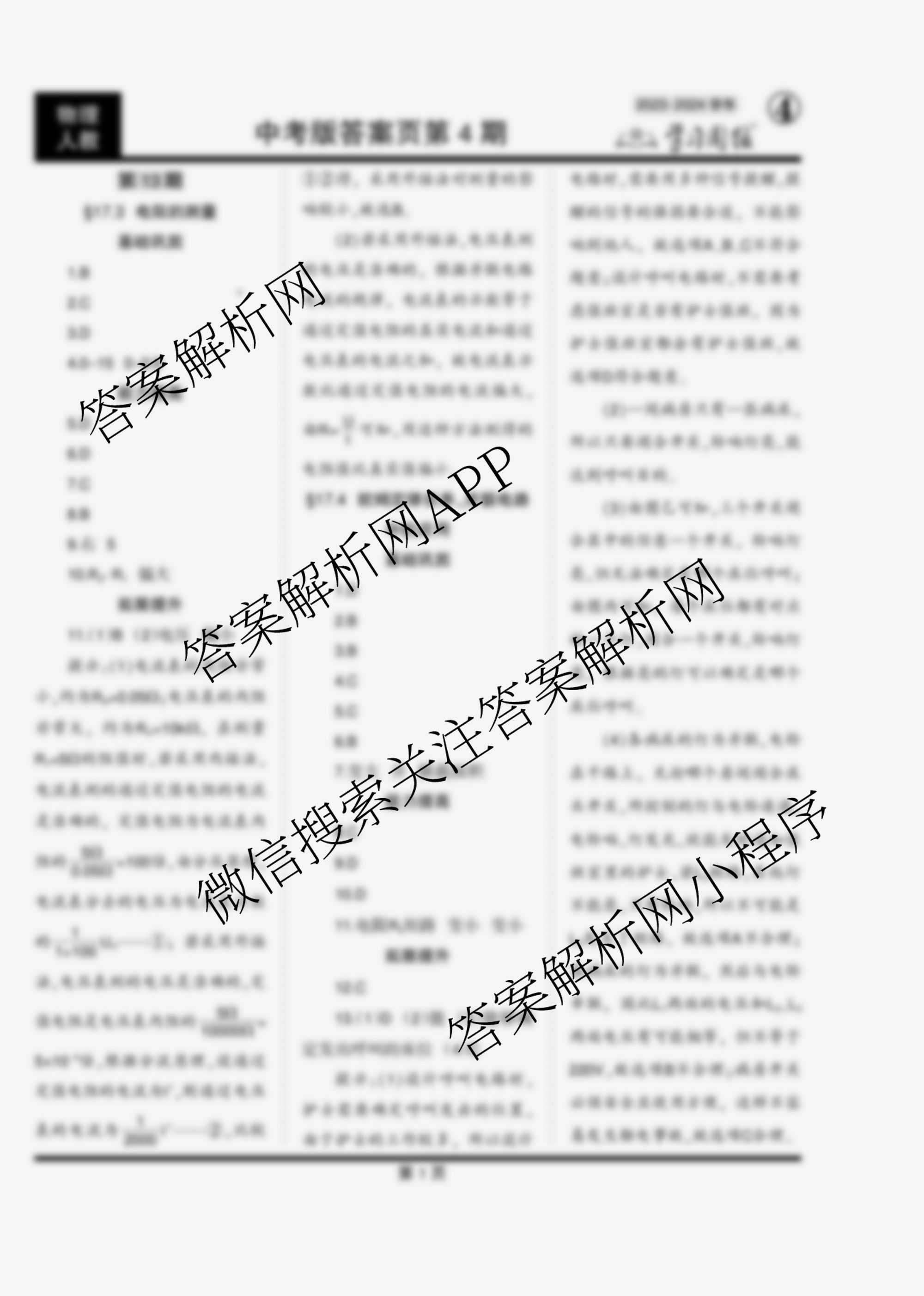 2023-2024 学习周报 物理 中考版(人教)第13期答案