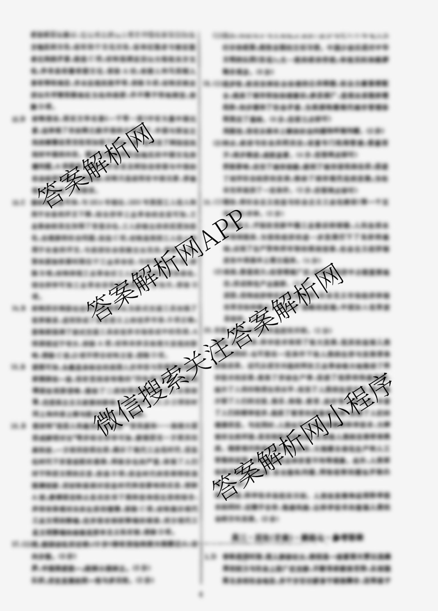 黄冈八模2024届高三历史模拟测试卷(甘肃)(六)6答案