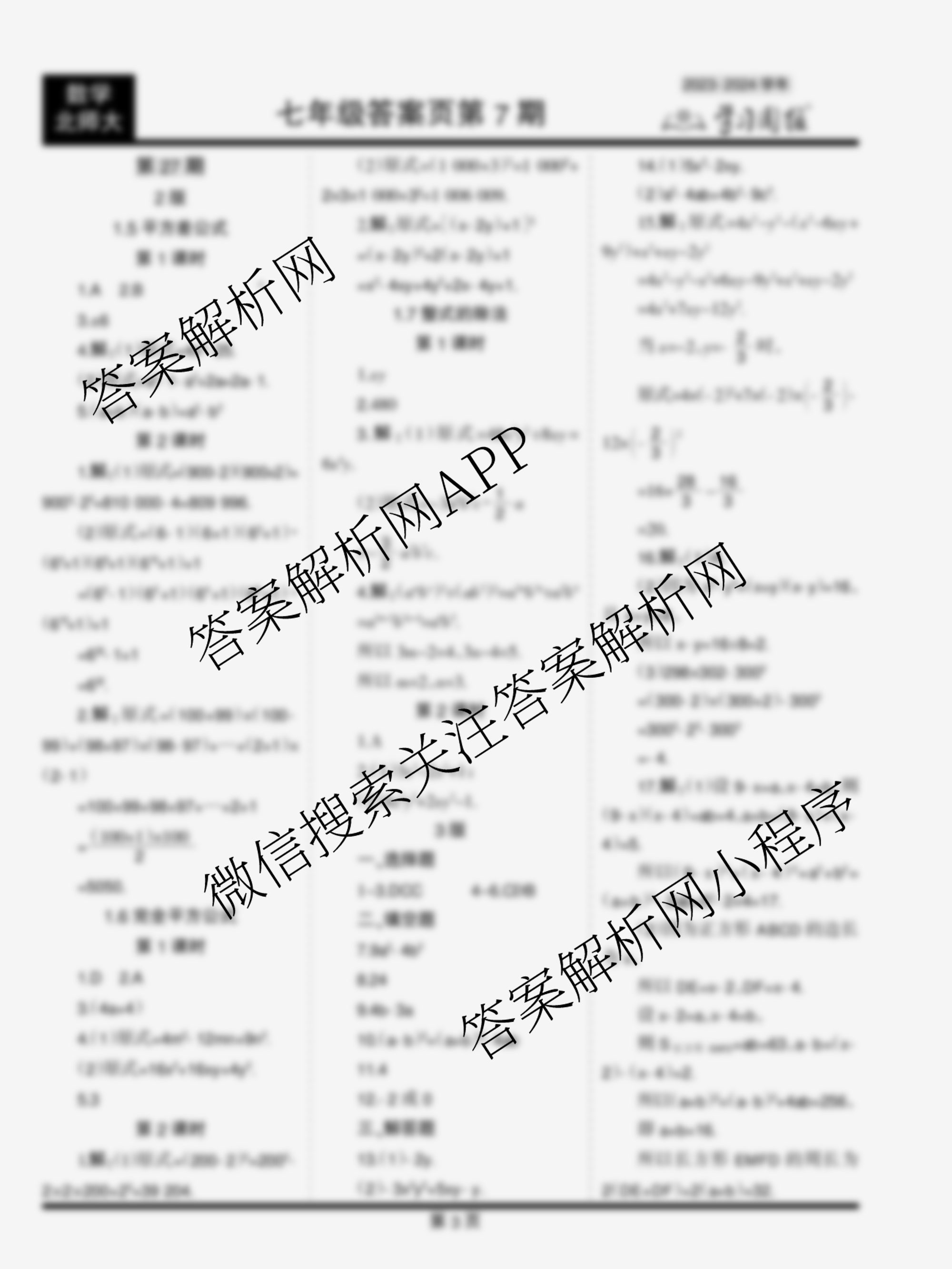 2023-2024 学习周报 数学 七年级(北师大)第27期答案,目前学英语报答案已经汇总了2023-2024 学习周报 数学 七年级(北师大)第27期答案的各科答案和试卷,获取更多学习周报答案解析,请在关注本站。