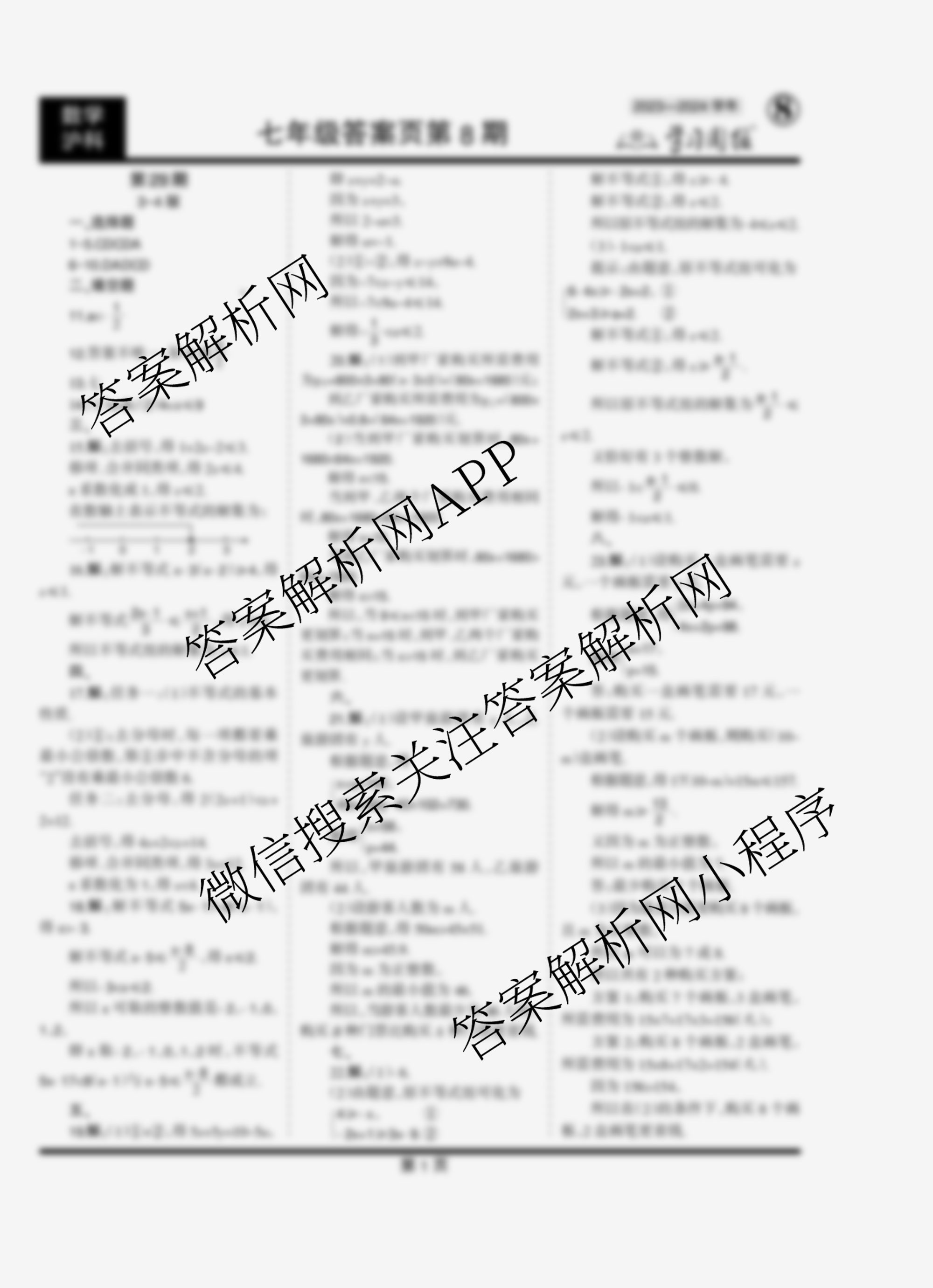 2023-2024 学习周报 数学 七年级(沪科)第29期答案,目前学英语报答案已经汇总了2023-2024 学习周报 数学 七年级(沪科)第29期答案的各科答案和试卷,获取更多学习周报答案解析,请在关注本站。