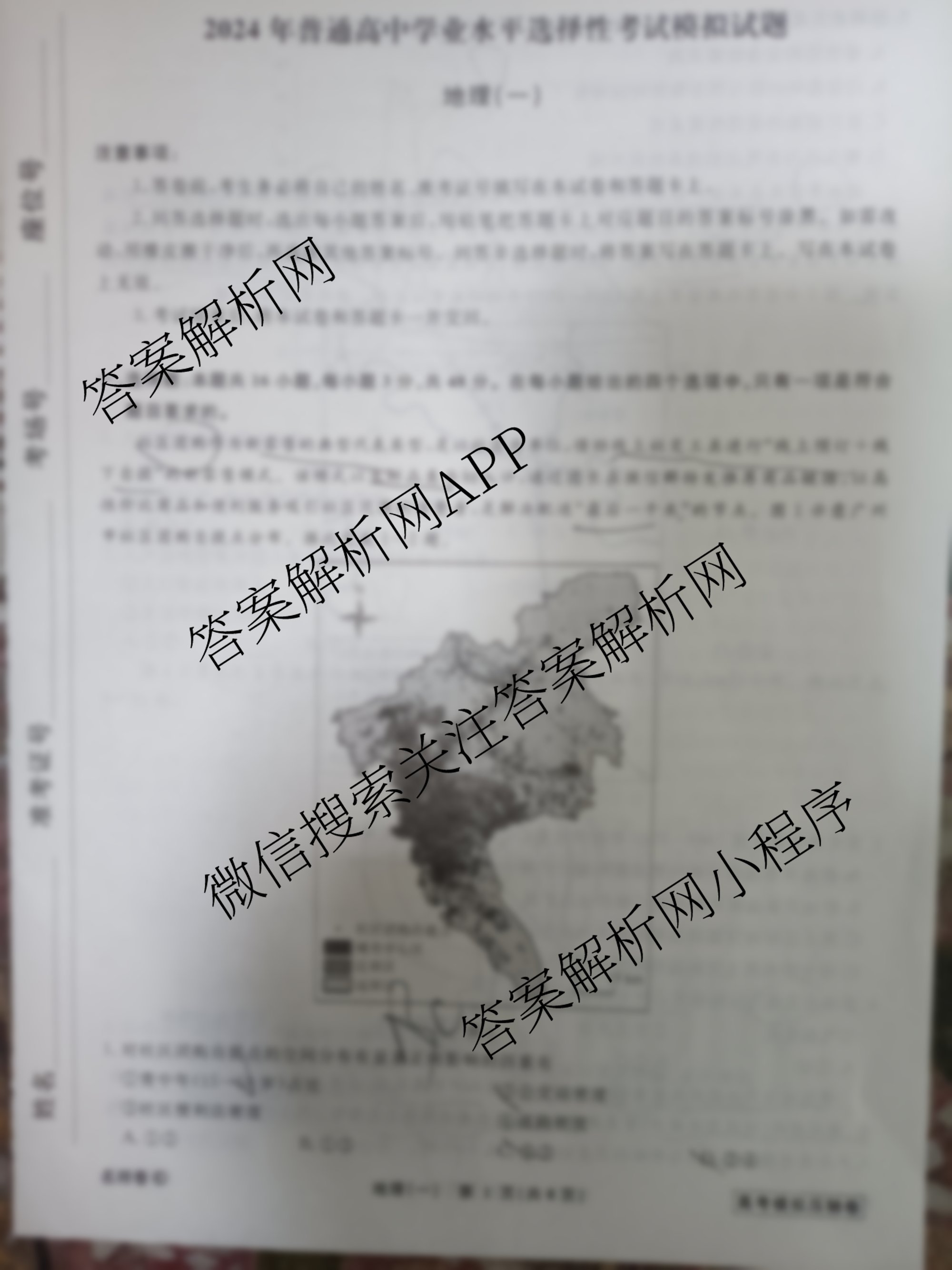 - [高三]衡水名师卷2024年普通高中学业水平选择性考试模拟 高考模拟压轴卷(一)1地理(实心圆)试题