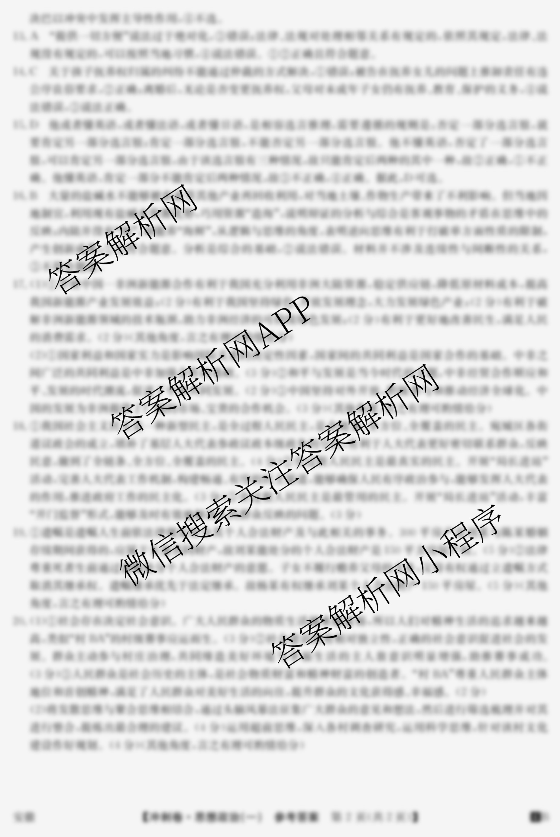 2024年安徽省普通高中学业水平选择性考试冲刺压轴卷(一)政治(安徽)答案