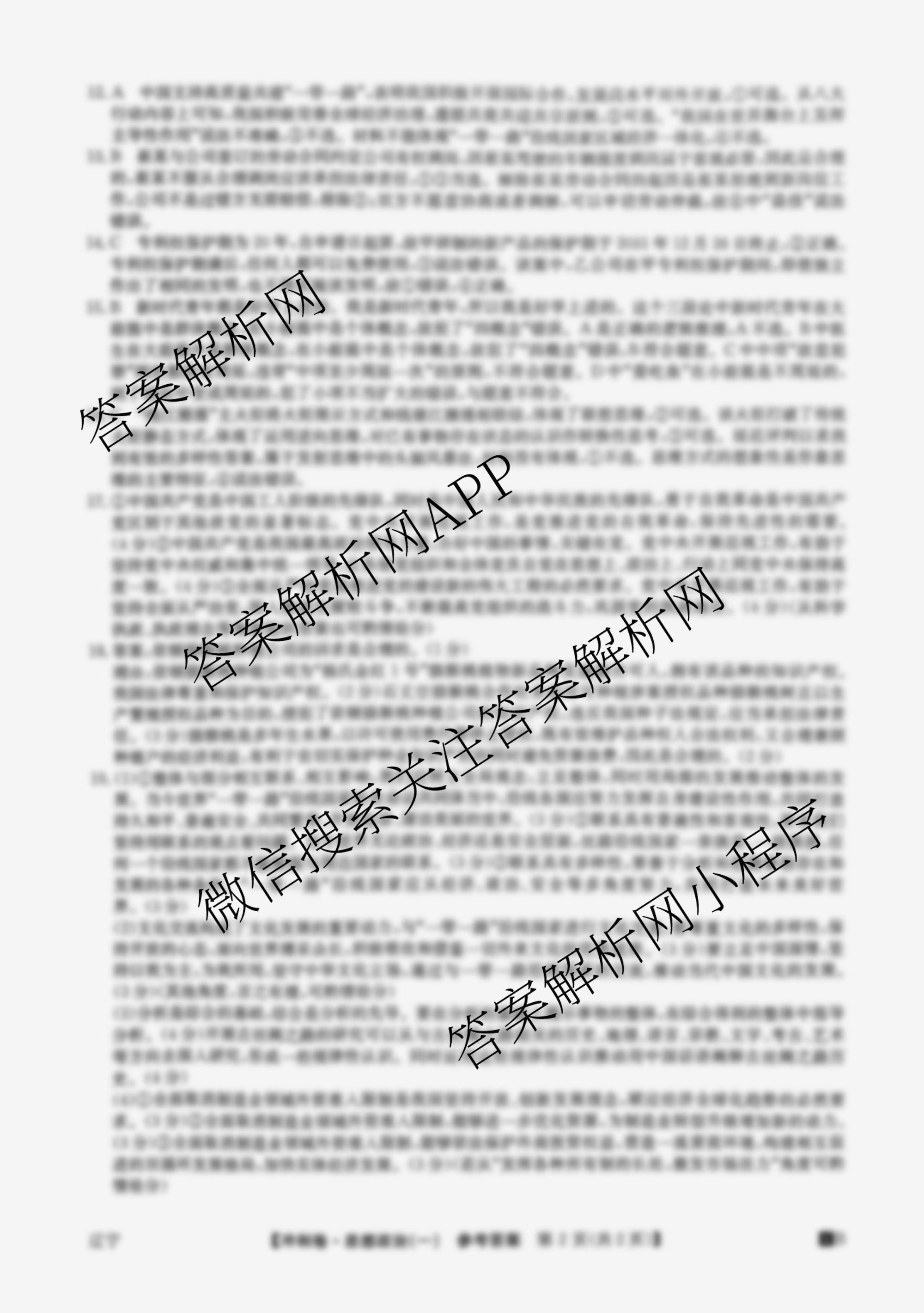 (高三)2024年辽宁省普通高中学业水平选择性考试冲刺压轴卷(一)政治(辽宁)答案