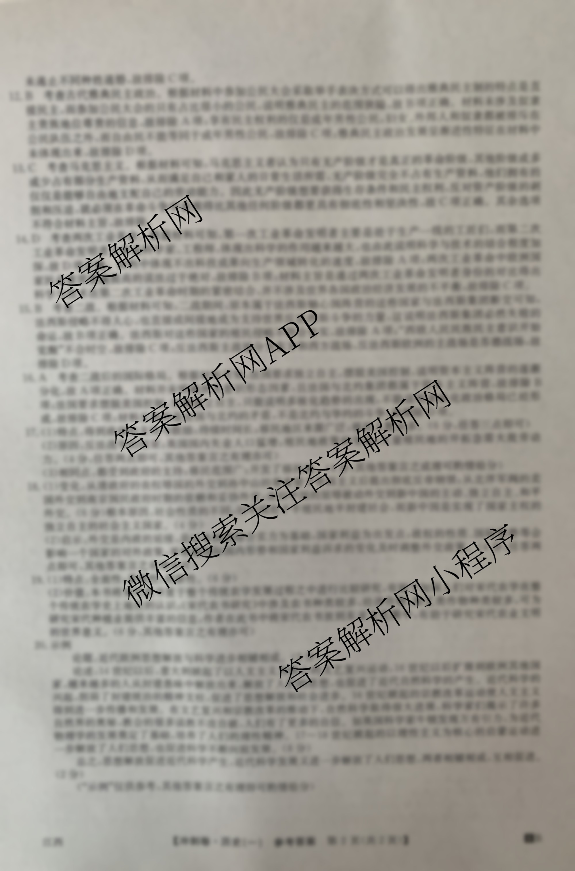 - 2024年江西省普通高中学业水平选择性考试冲刺压轴卷(一)历史(江西)答案
