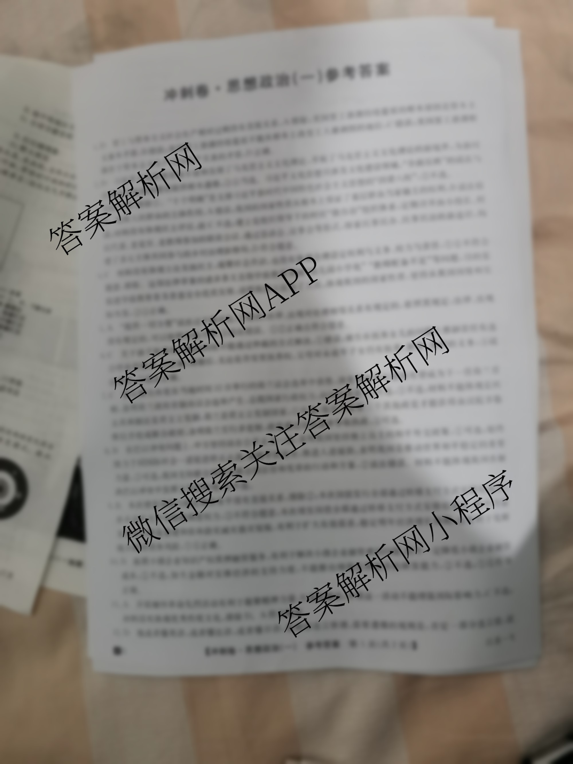 2024年江苏省普通高中学业水平选择性考试冲刺压轴卷(一)1政治(江苏)答案