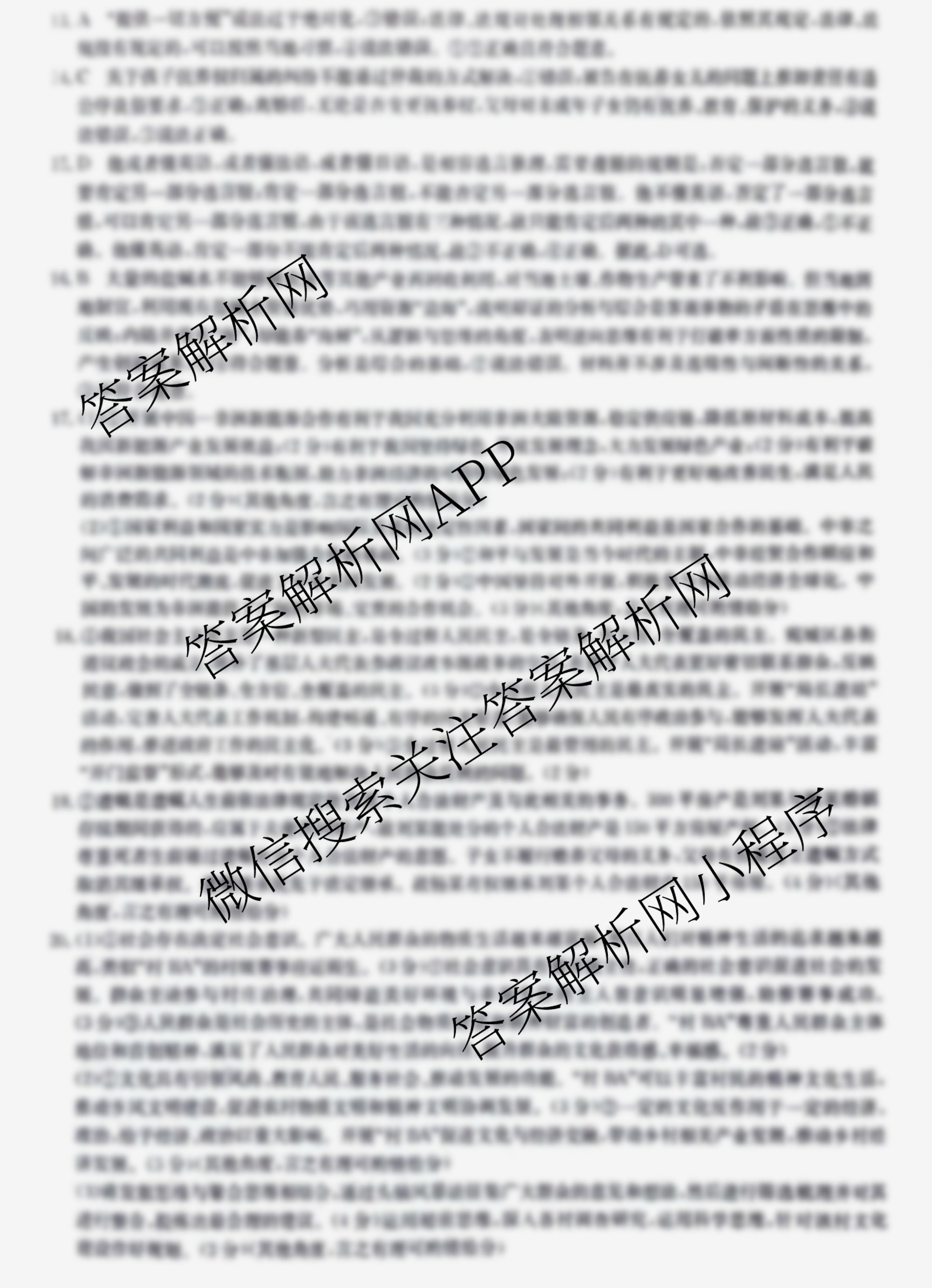 2024年甘肃省普通高中学业水平选择性考试冲刺压轴卷(一)1政治(甘肃)答案