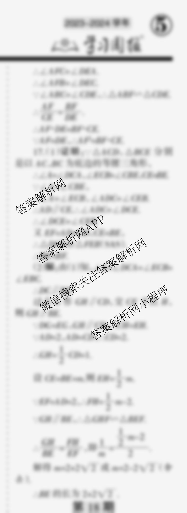 2023-2024 学习周报 数学 中考版(江西人教)第17期答案,目前学英语报答案已经汇总了2023-2024 学习周报 数学 中考版(江西人教)第17期答案的各科答案和试卷,获取更多学习周报答案解析,请在关注本站。