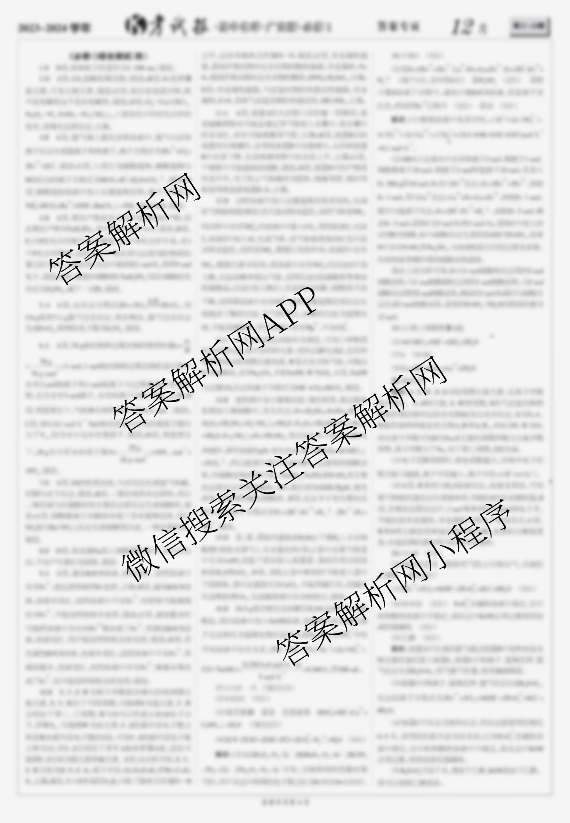 2023-2024 考试报 高中化学(广东版必修1)第24期答案