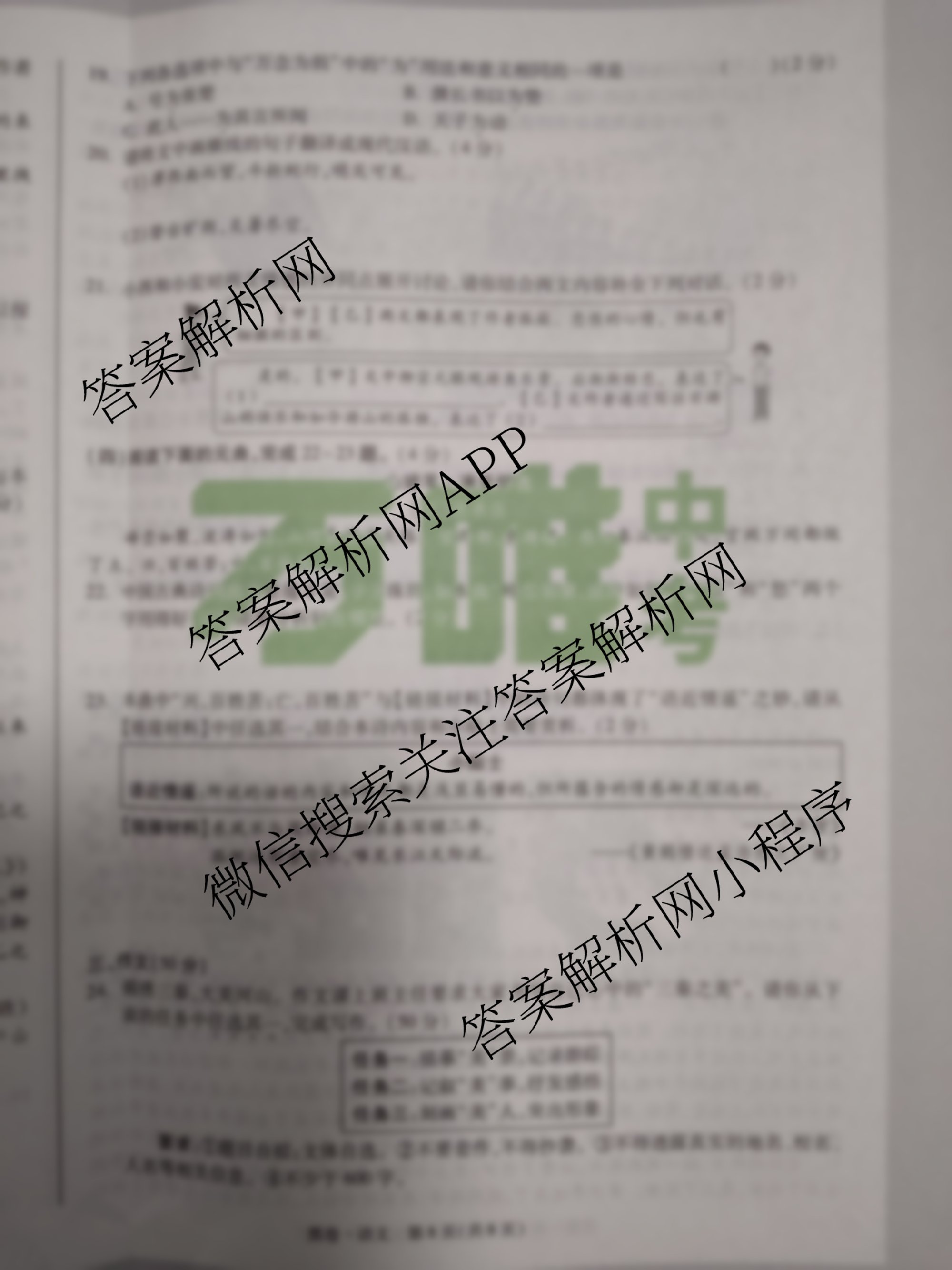 - 2024年陕西省初中学业水平考试黑白卷 语文(白卷)答案