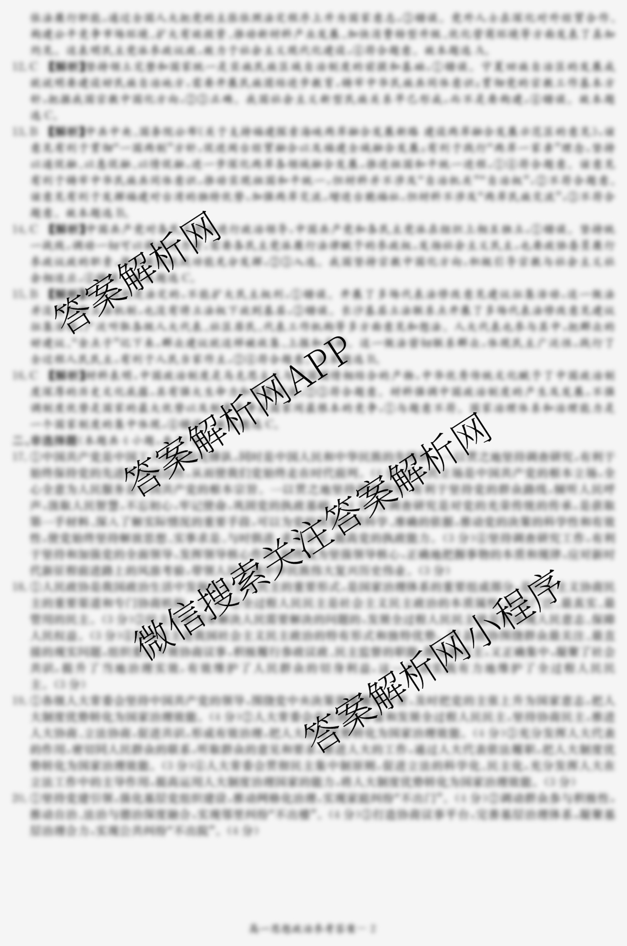 - [高一]炎德英才名校联考联合体2024年春季年级期中联合考试政治答案