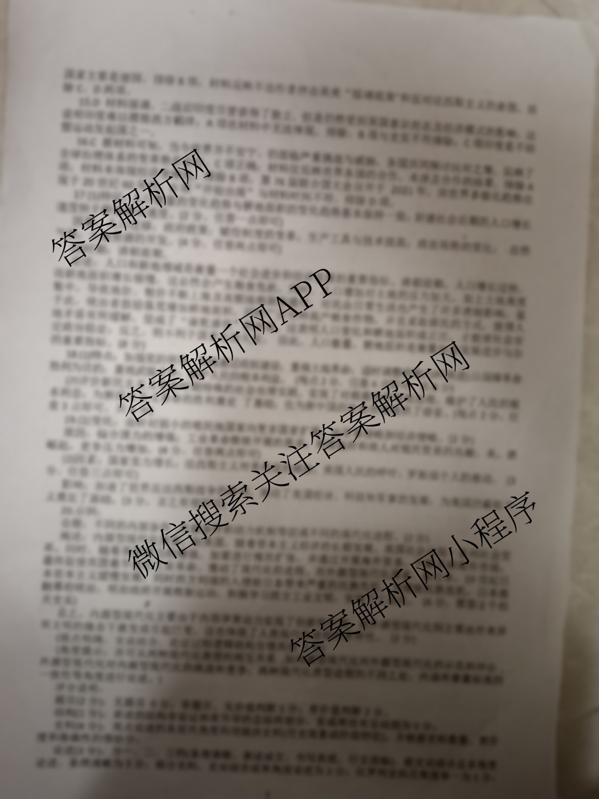 - 2024届[高三]黄冈八模历史模拟测试卷(福建)(一)1答案