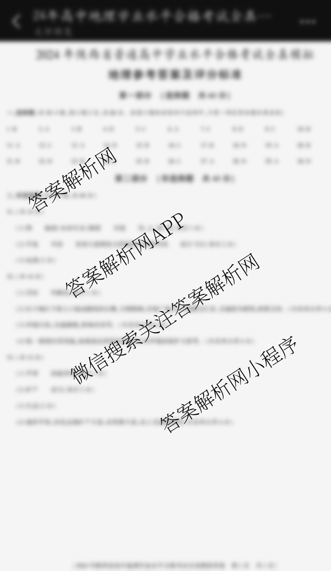 - [高一](益卷)·2024年陕西省普通高中学业水平合格考试全真模拟地理答案