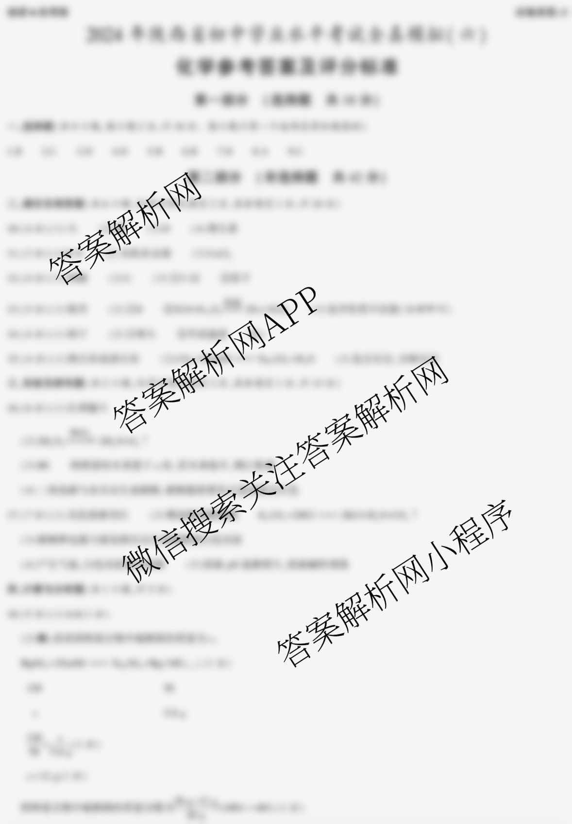 - (九年级)陕西(益卷)2024年陕西省初中学业水平考试全真模拟(六)6化学(B)答案