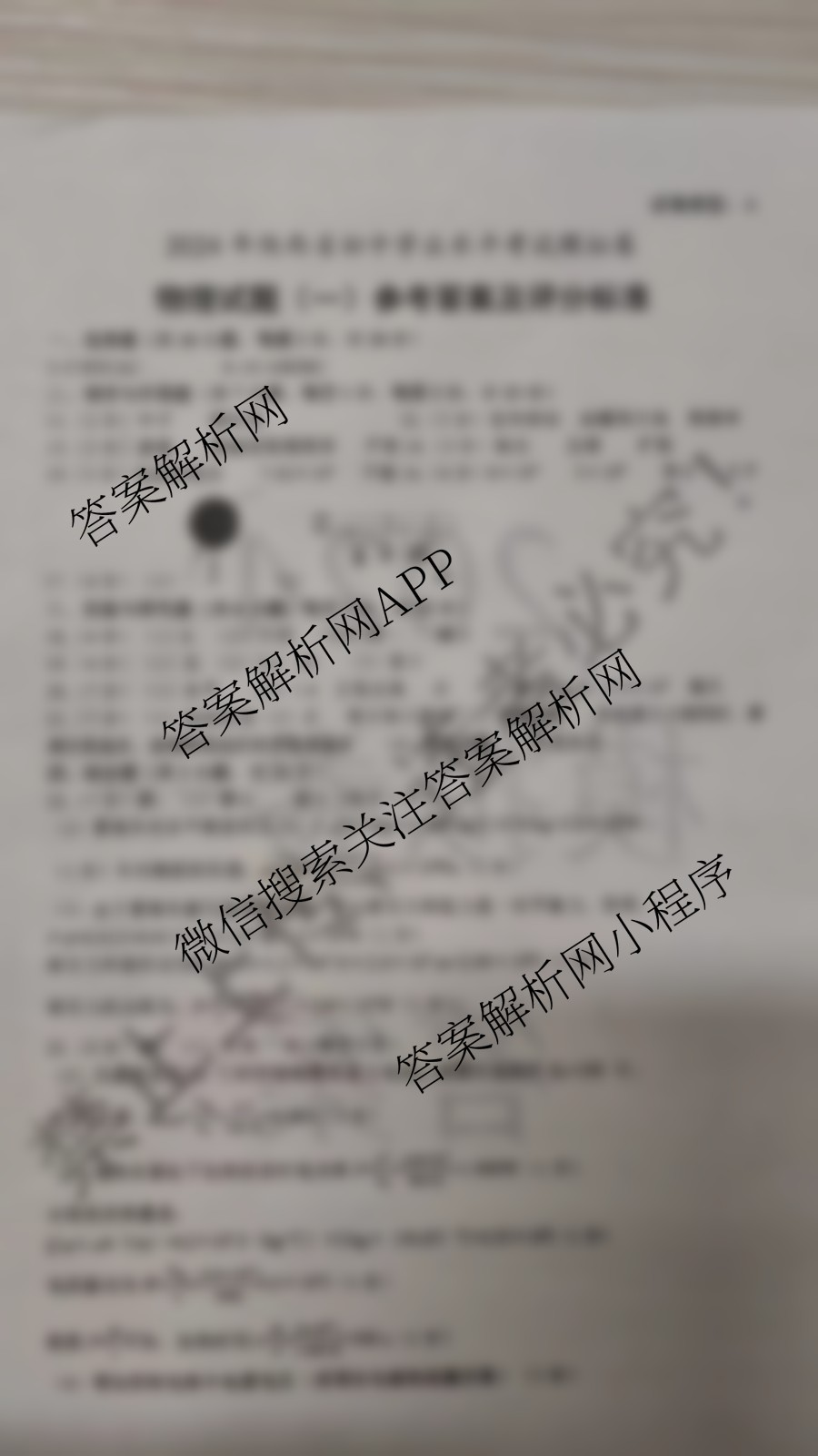 - (九年级)益卷2024年陕西省初中学业水平考试模拟卷(一)物理答案