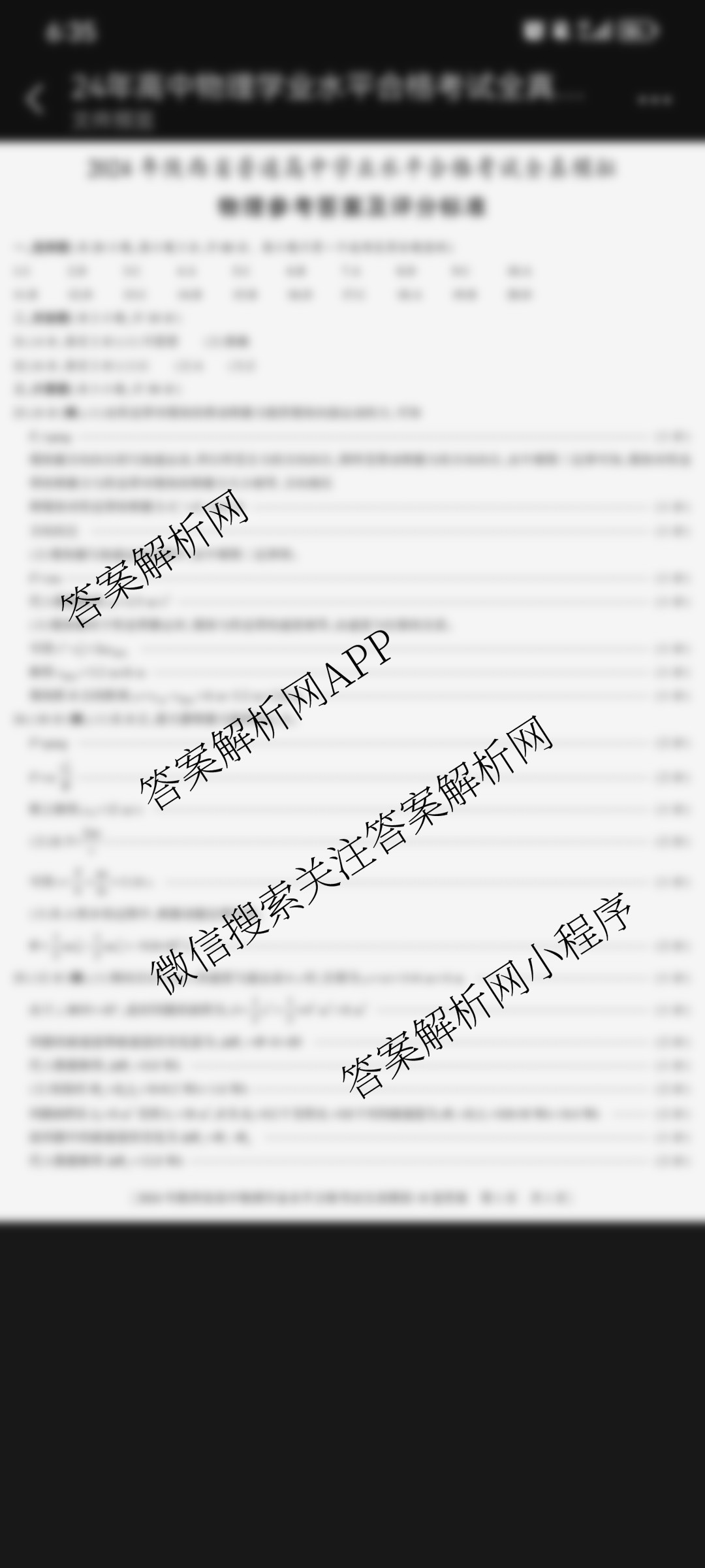 - 益卷2024年陕西省普通高中学业水平合格考试全真模拟物理(A卷)答案