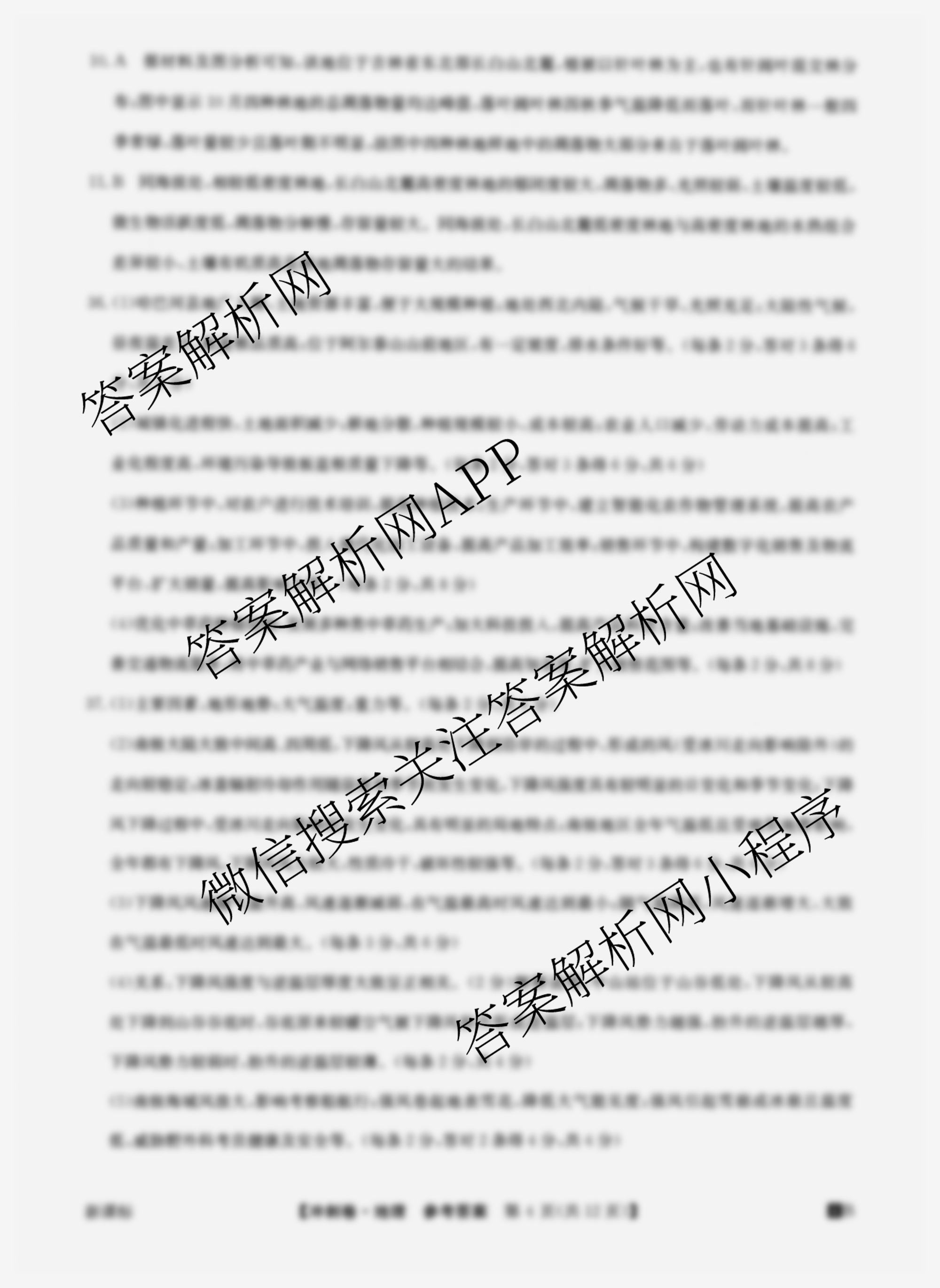 - 2024年安徽省普通高中学业水平选择性考试冲刺压轴卷(二)地理(安徽)答案