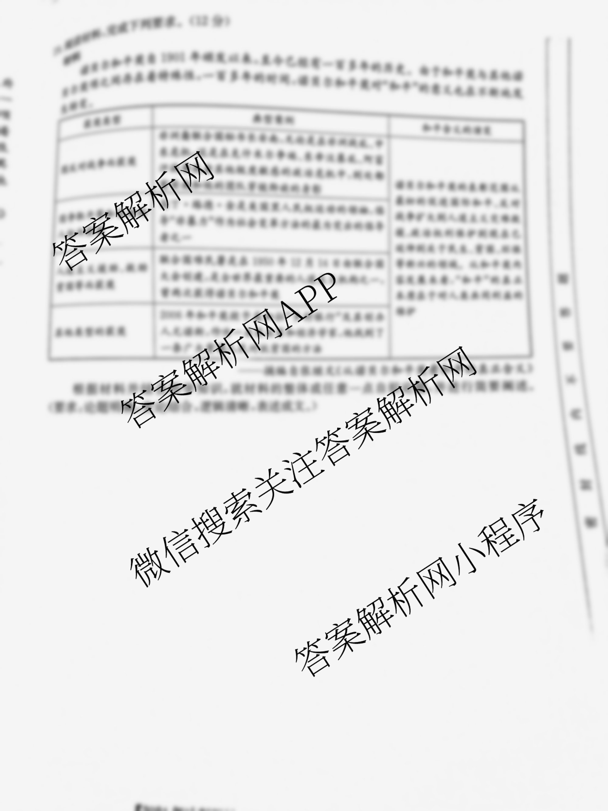 - [高三]2024年安徽省普通高中学业水平选择性考试冲刺压轴卷(二)历史(安徽)答案