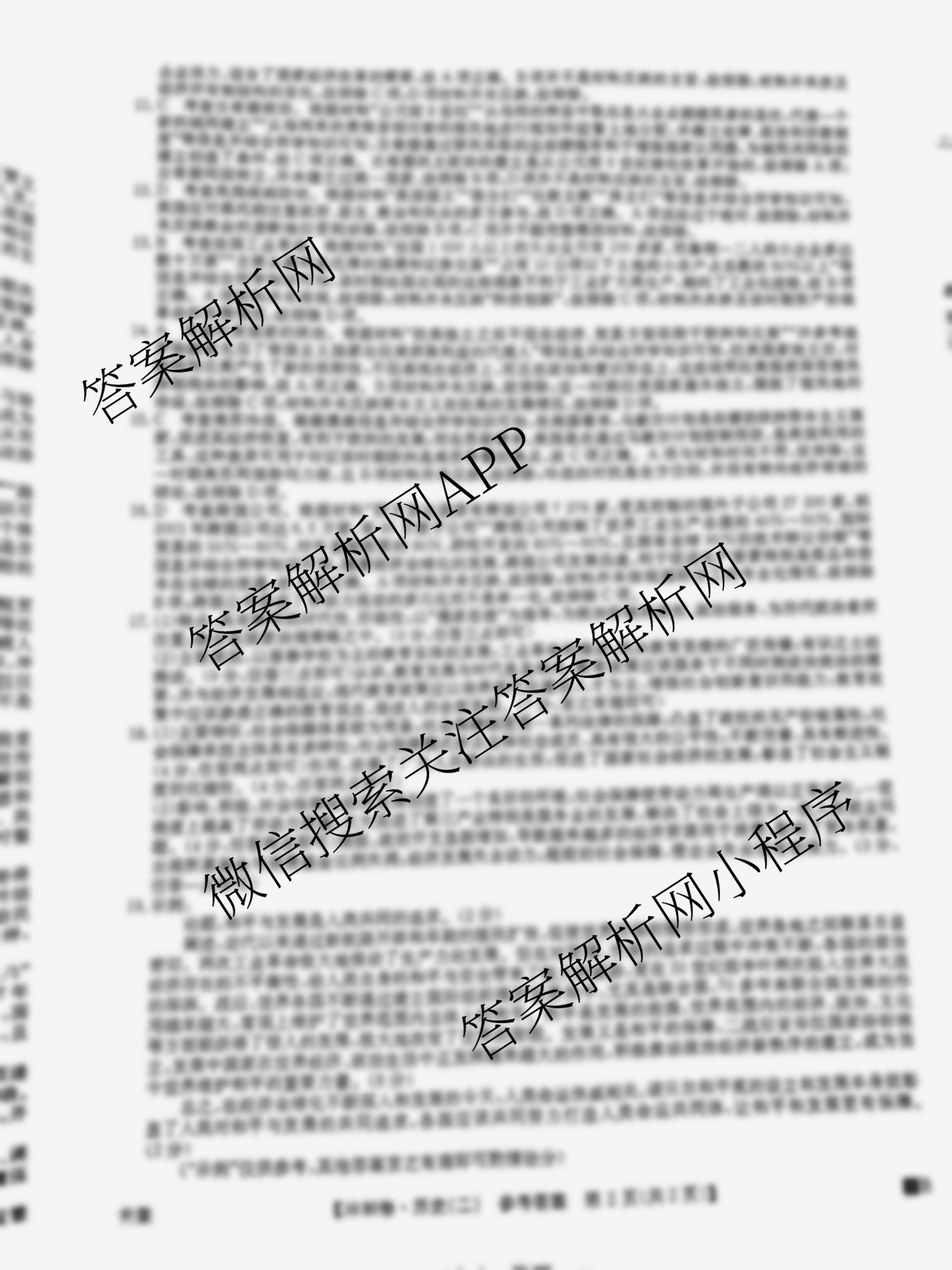 - [高三]2024年安徽省普通高中学业水平选择性考试冲刺压轴卷(二)历史(安徽)答案