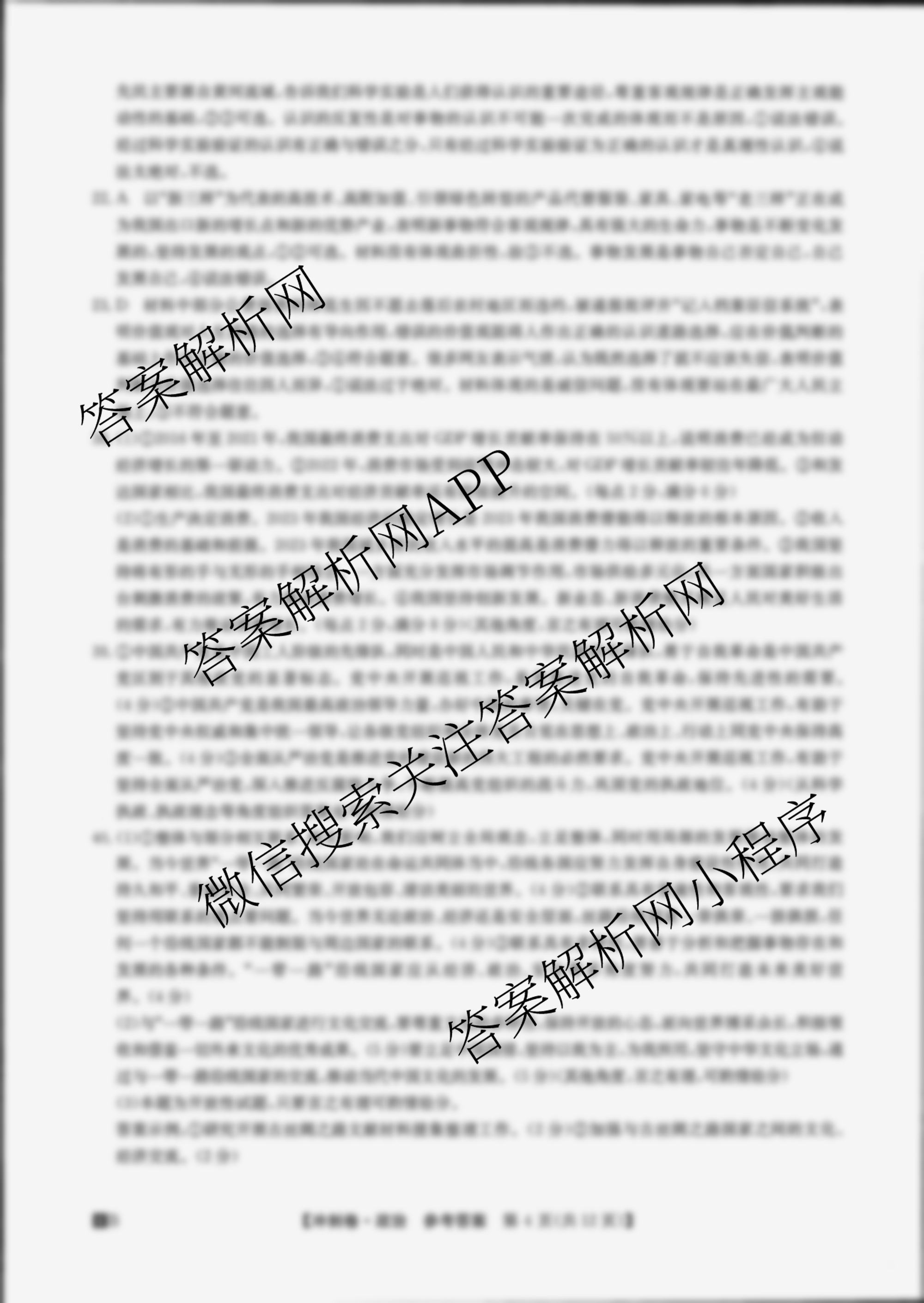 - [高三]2024年安徽省普通高中学业水平选择性考试冲刺压轴卷(二)历史(安徽)答案
