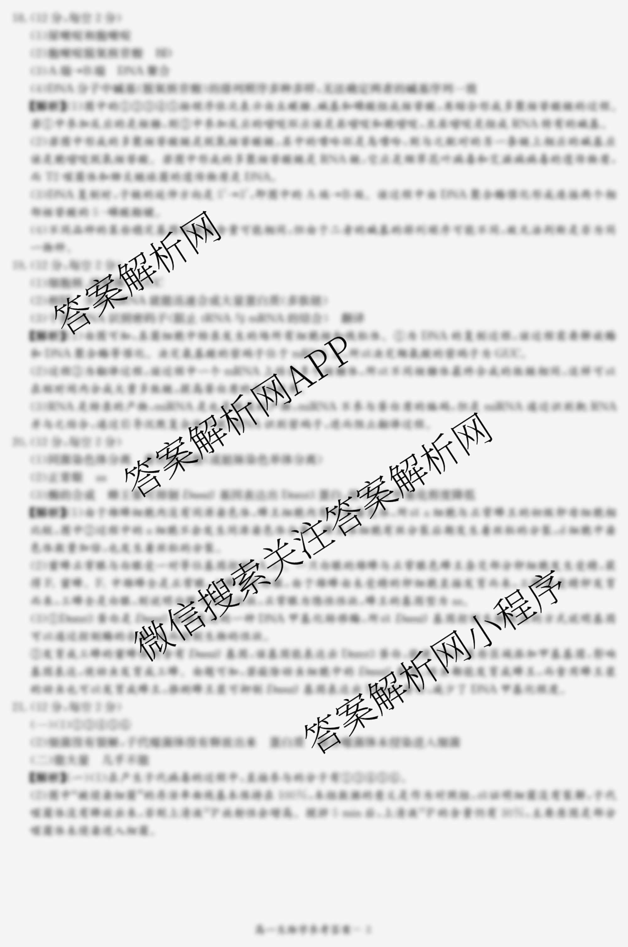 - 炎德英才·名校联考联合体2024年春季高一年级期中联合考试生物答案